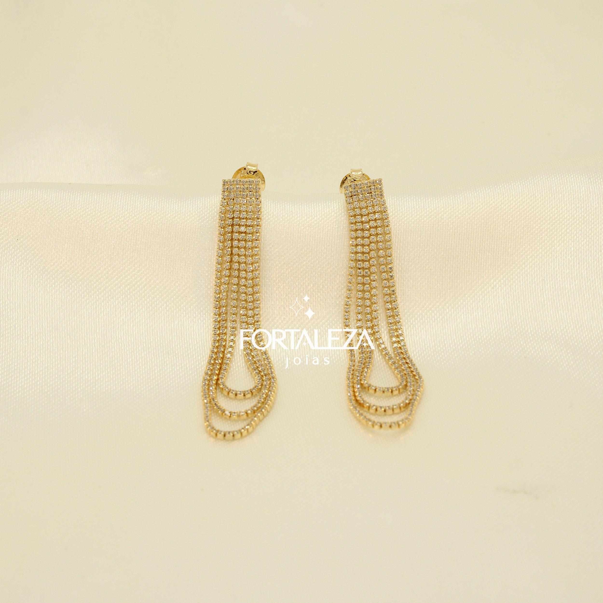 Brinco de Franja em Cascata Cravejado em Zircônia Cristal Banhado a Ouro 18k