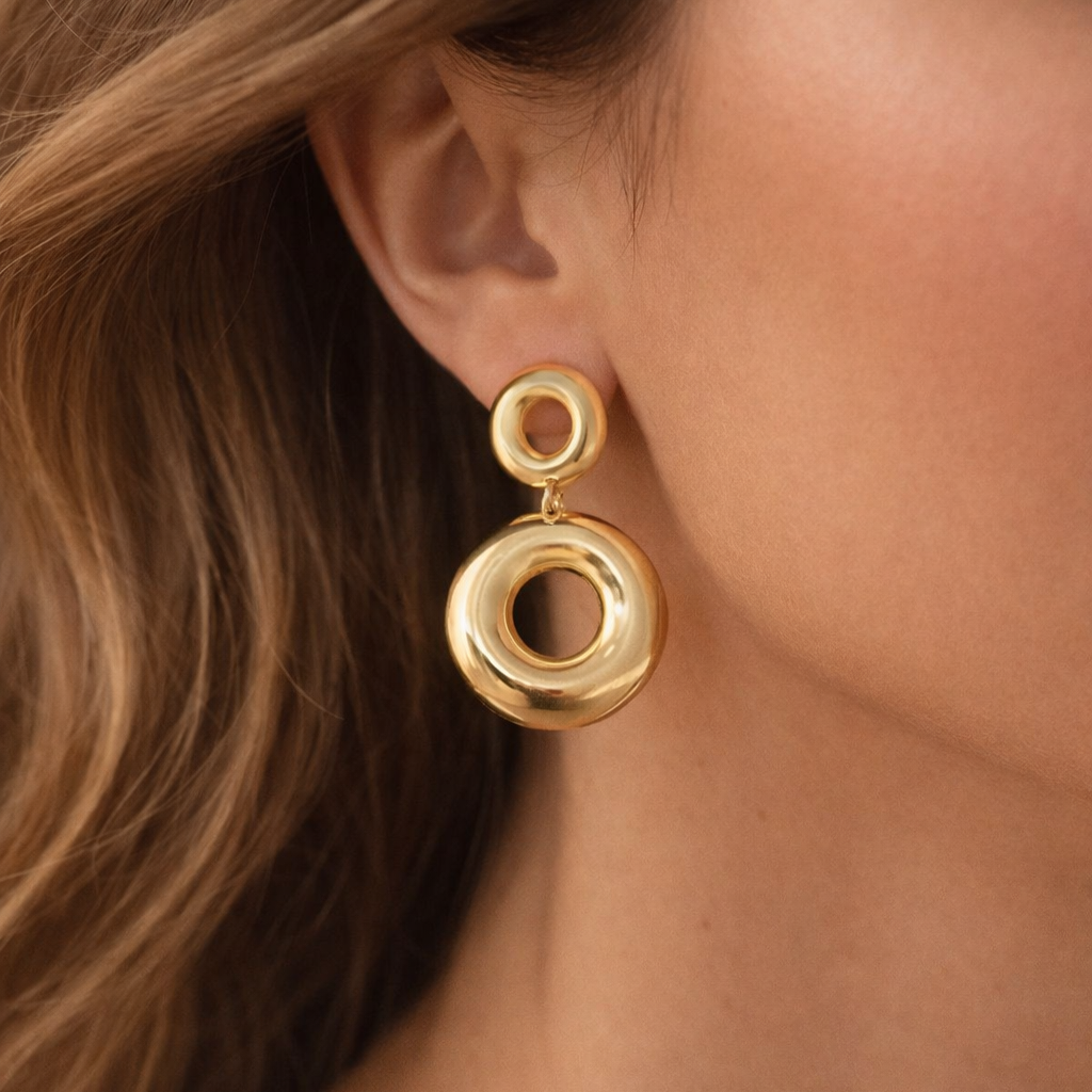 Brinco Círculos Polidos e Detalhe Fosco Banhado a Ouro 18k
