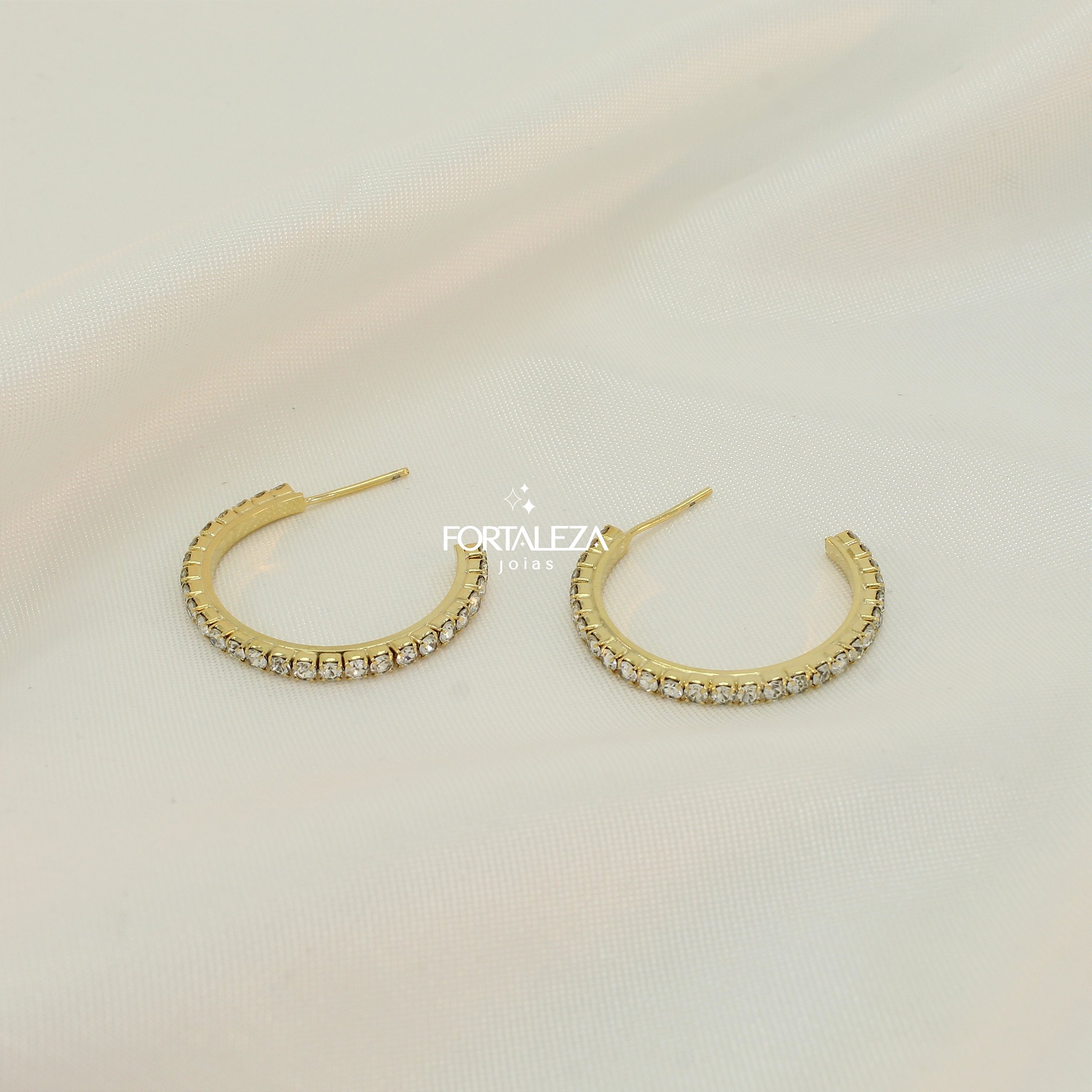 Brinco Argola Cravejado 3mm em Zircônia Banhado a Ouro 18k
