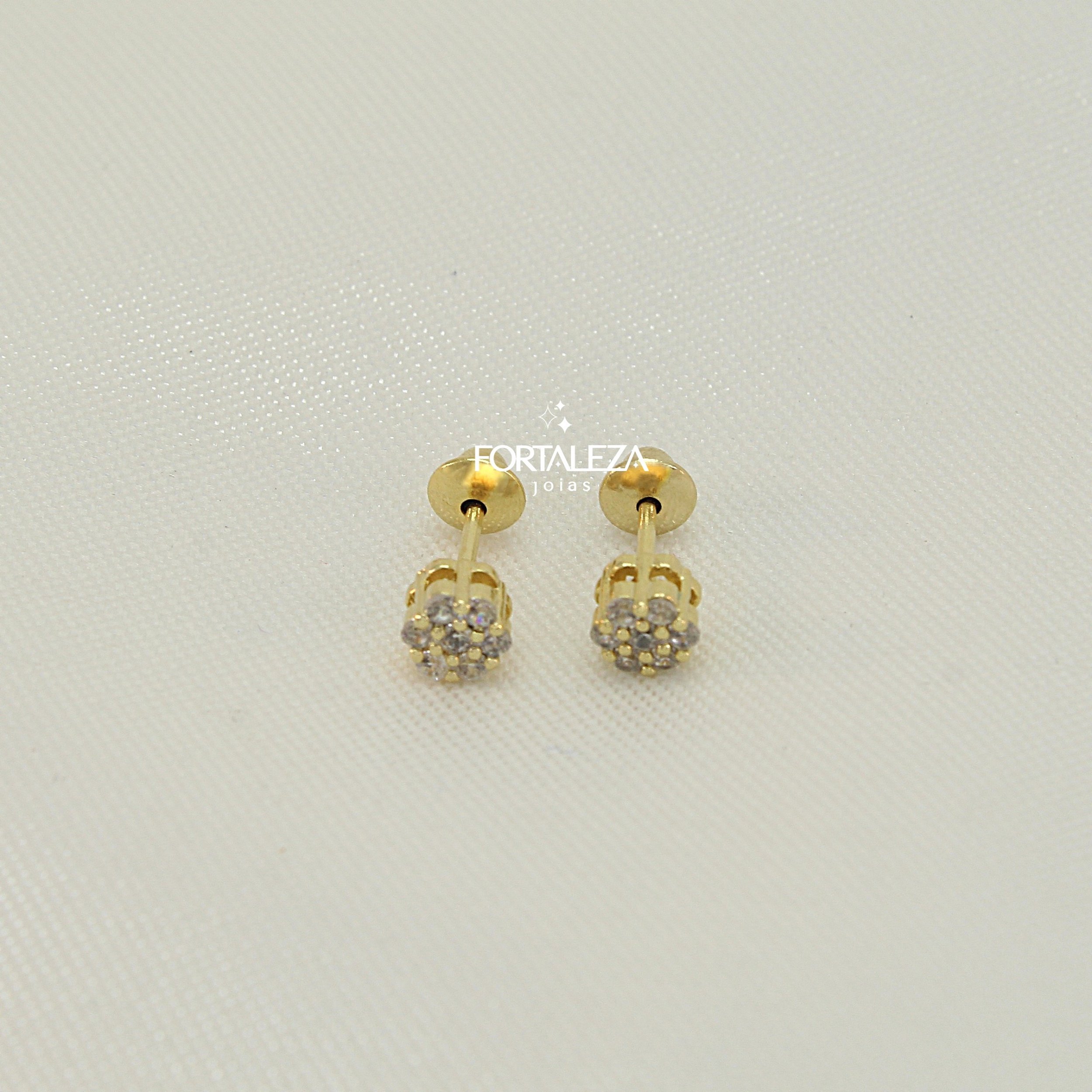 Brinco Flor de Zircônia Cristal Banhado a Ouro 18k