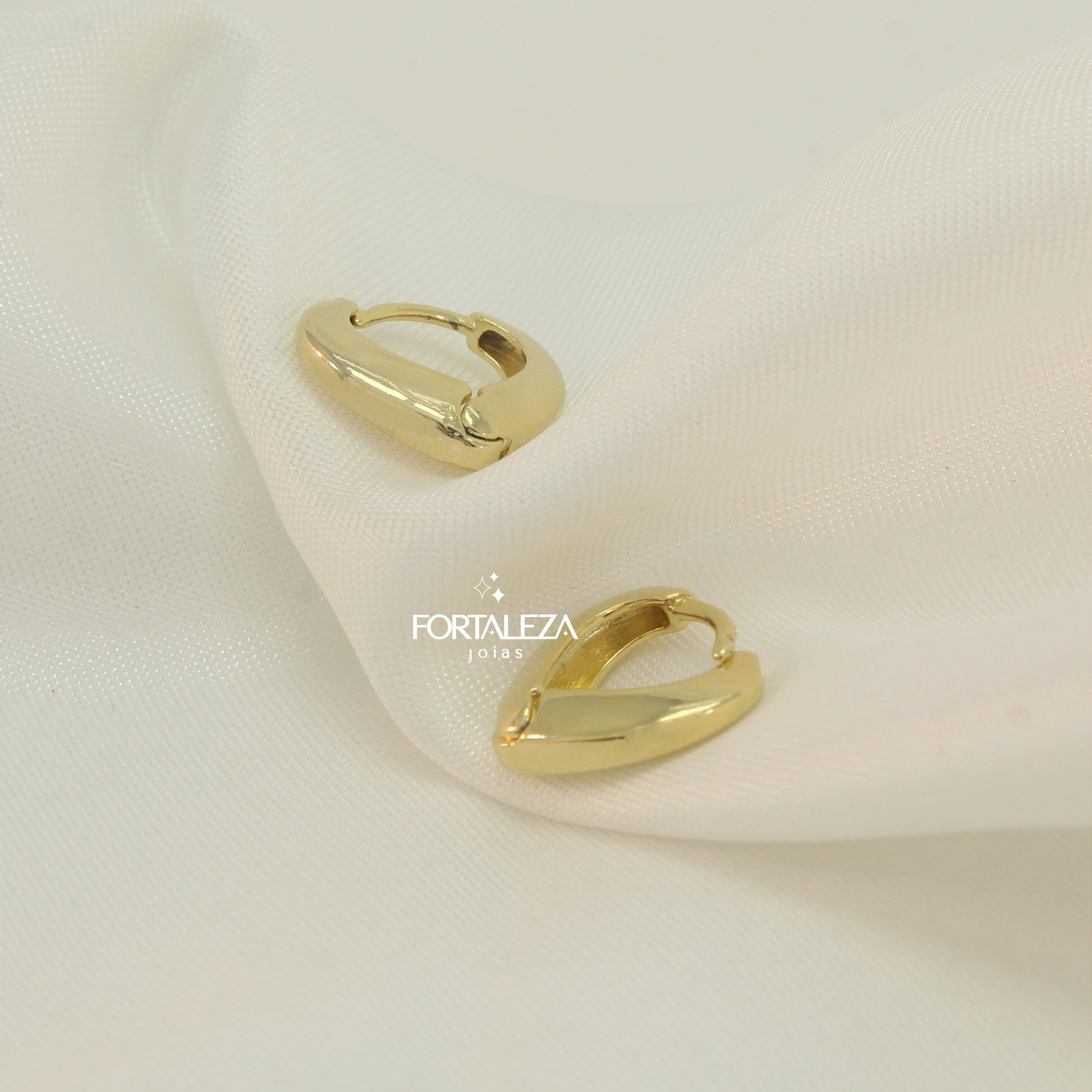 Brinco Argola com Design de Coração Polido Banhado a Ouro 18k