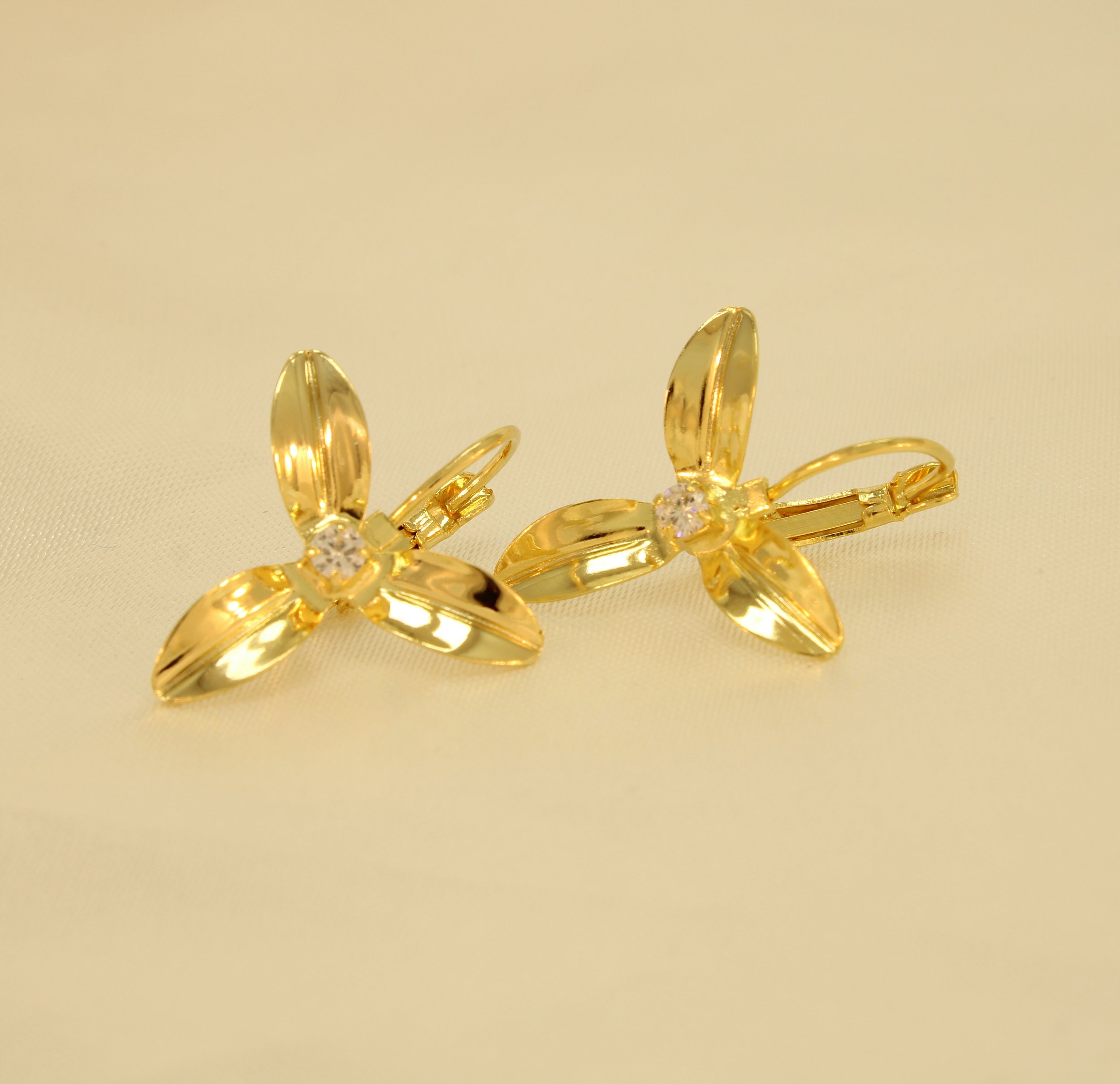 Brinco de Flor com Fecho Italiano Folheado a Ouro 18k