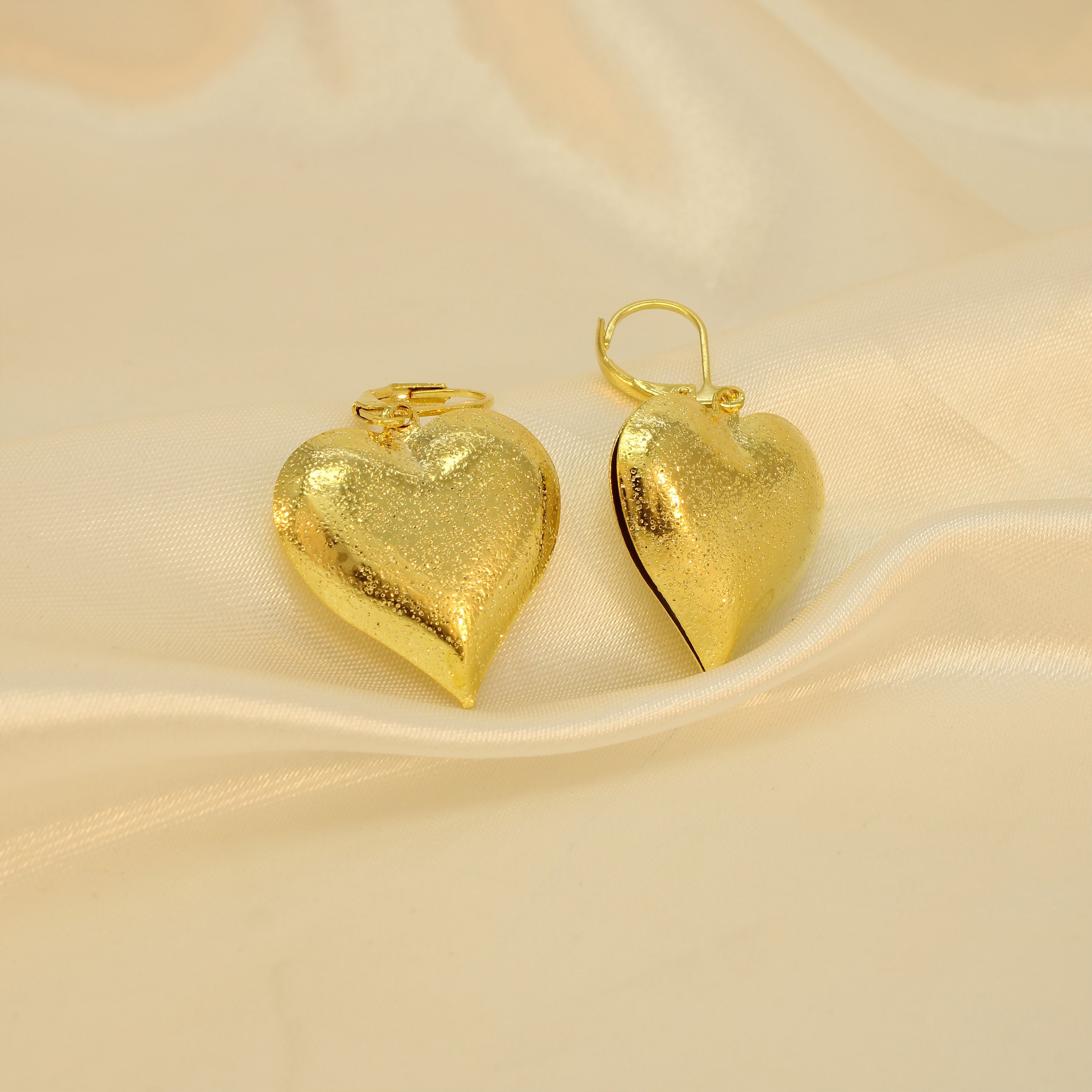 Brinco de Coração com Design Granulado Banhado a Ouro 18k