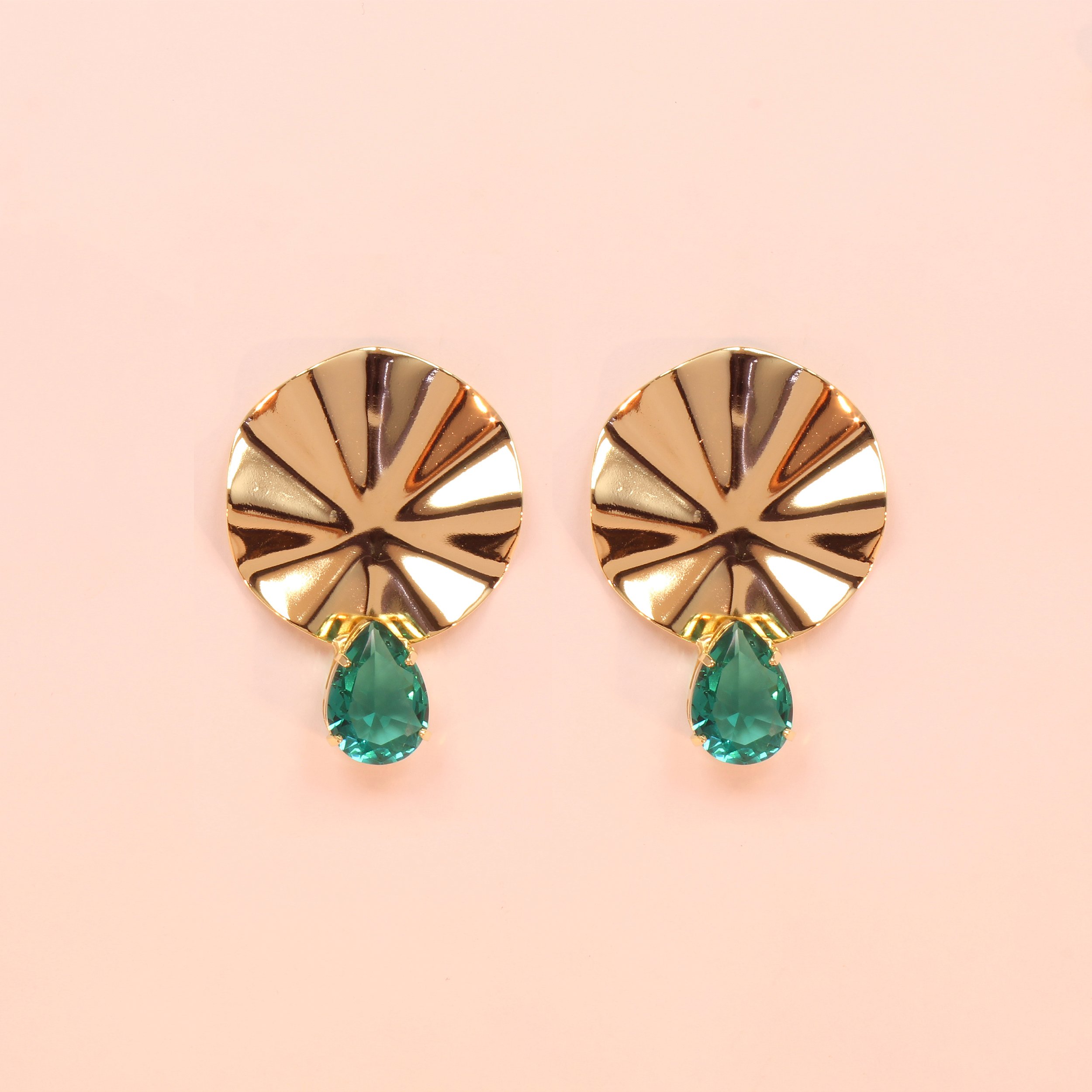 Brinco com Design Martelado e Zircônias Folheado a Ouro 18k