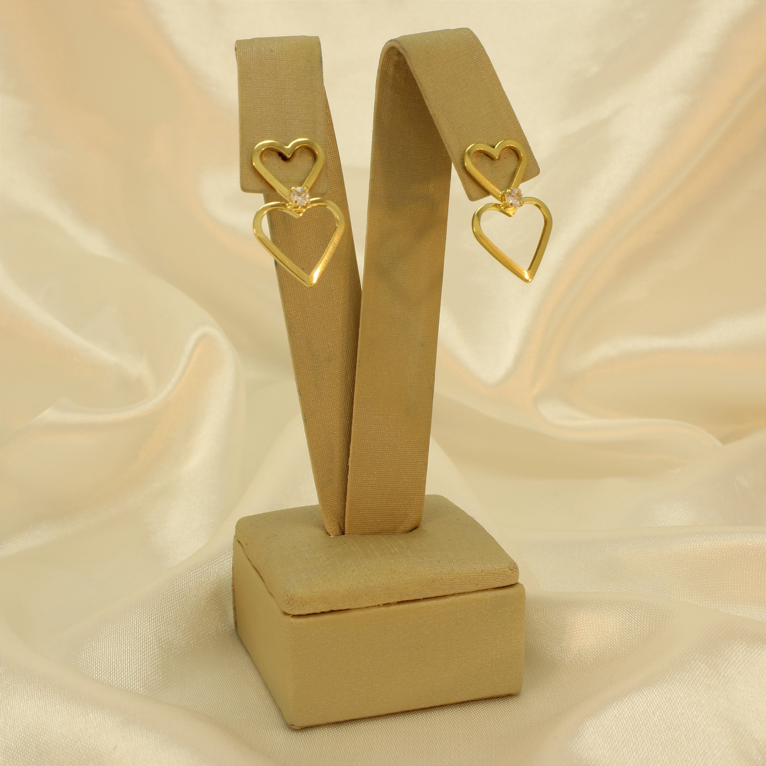 Brinco Coração Vazado com Zircônia Cristal Banhado a Ouro 18k