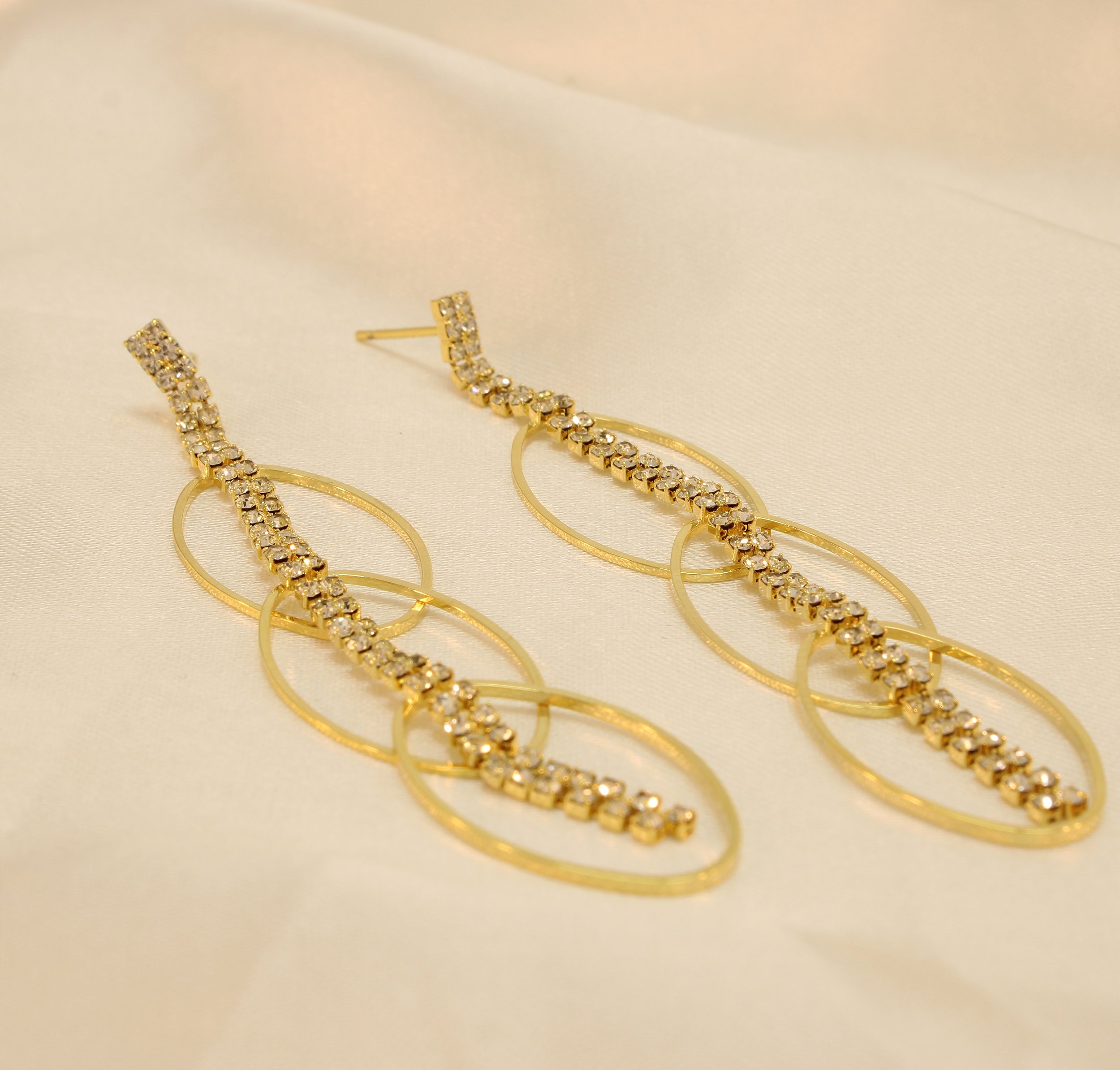 Brincos em Fios Cravejados Folheado a Ouro 18k