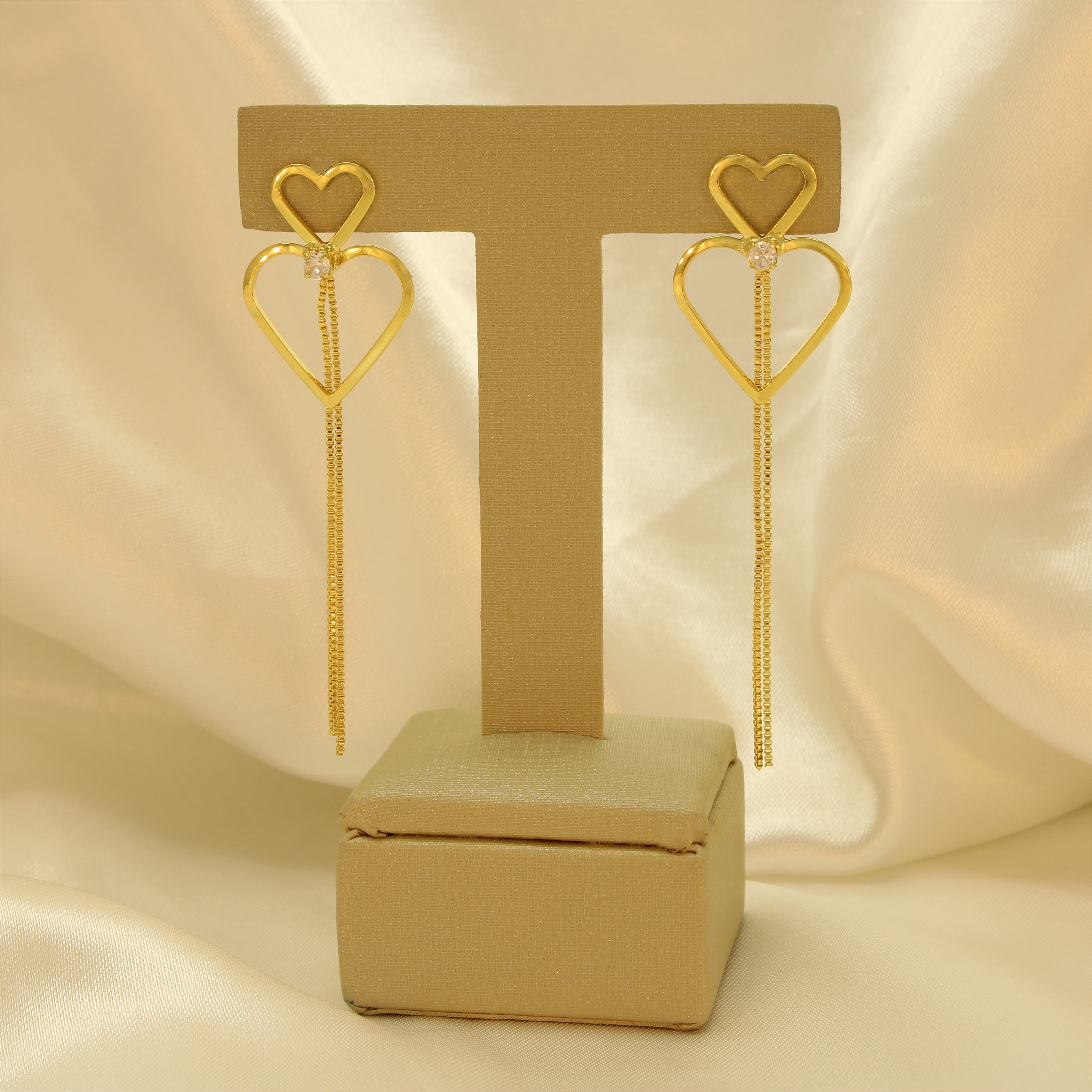 Brinco de Corações Vazados com Fios Veneziana e Detalhe em Zircônia Cristal Banhado a Ouro 18k