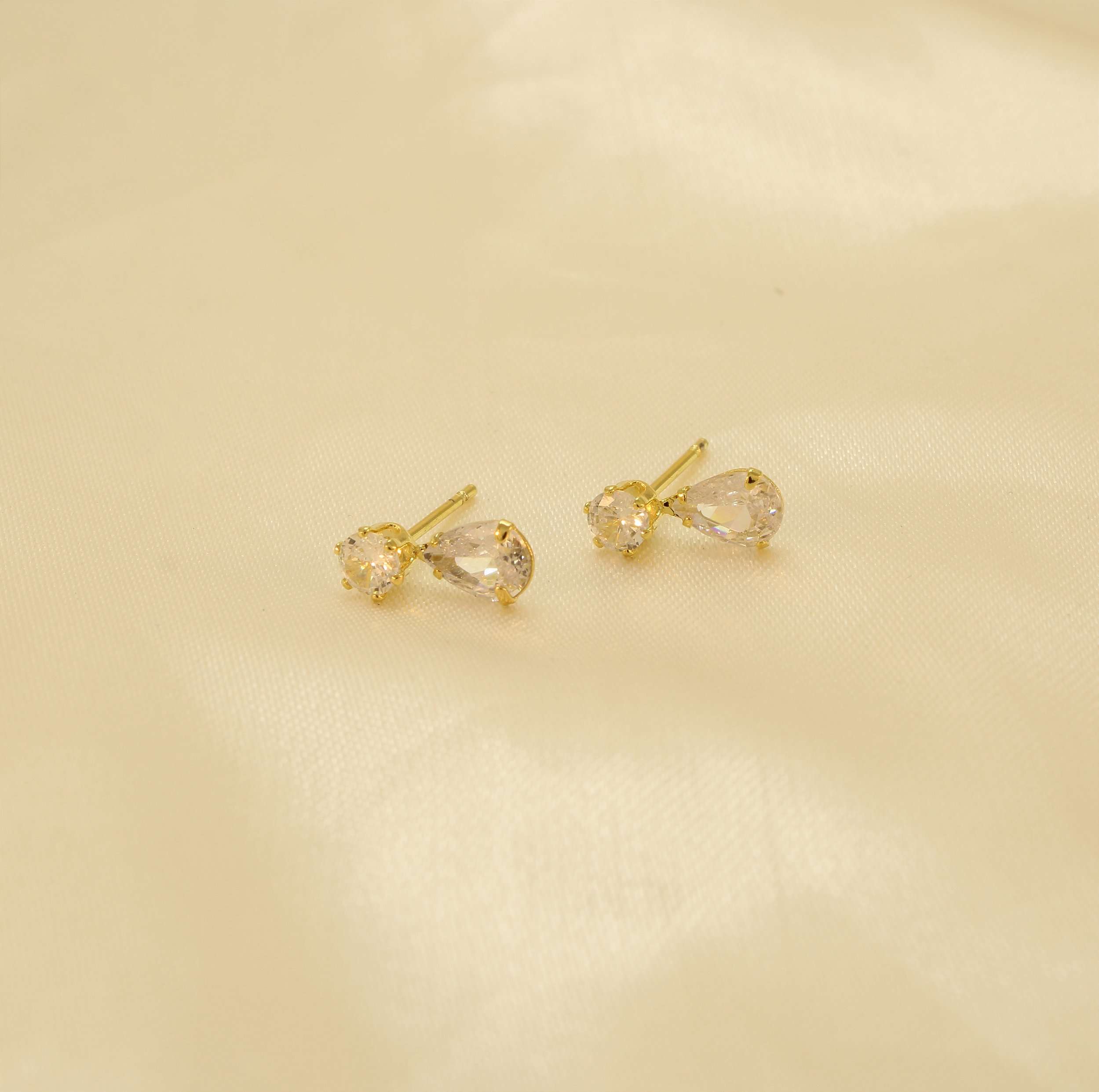 Brinco Gota em Zircônia Folheado a Ouro 18k