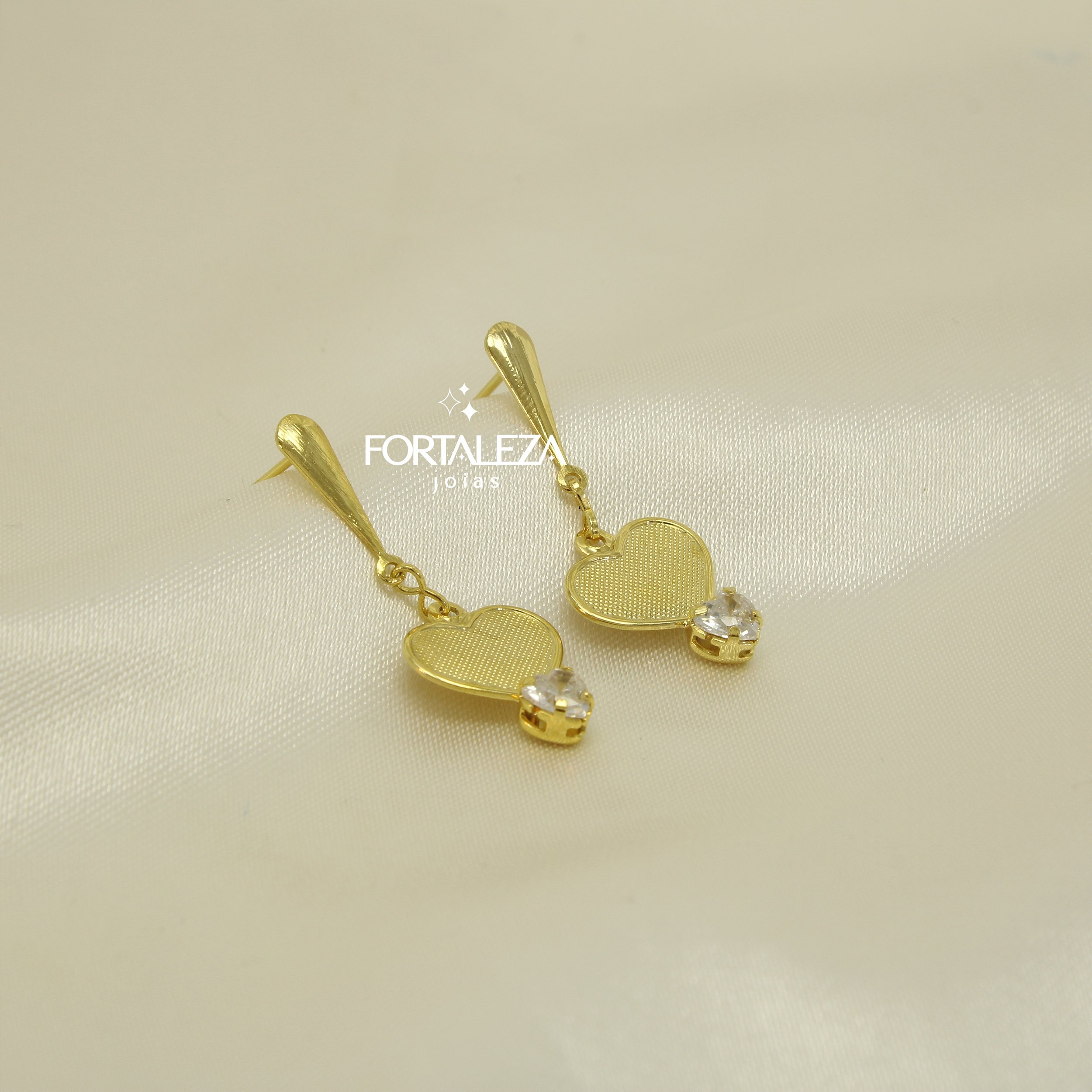 Brinco de Coração com Zircônia Cristal Banhado a Ouro 18k