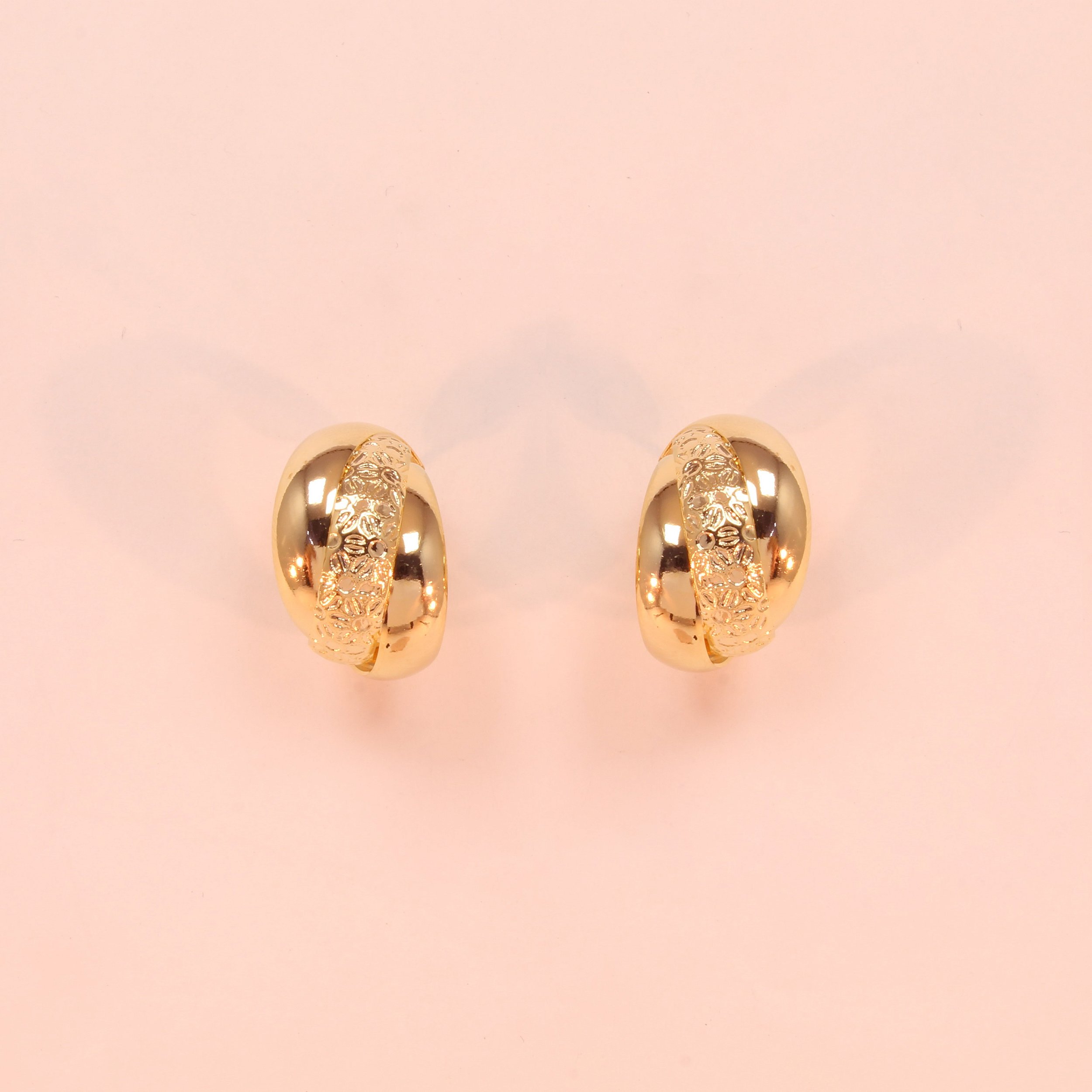 Brinco Argola com Detalhe de Flores Folheado a Ouro 18k