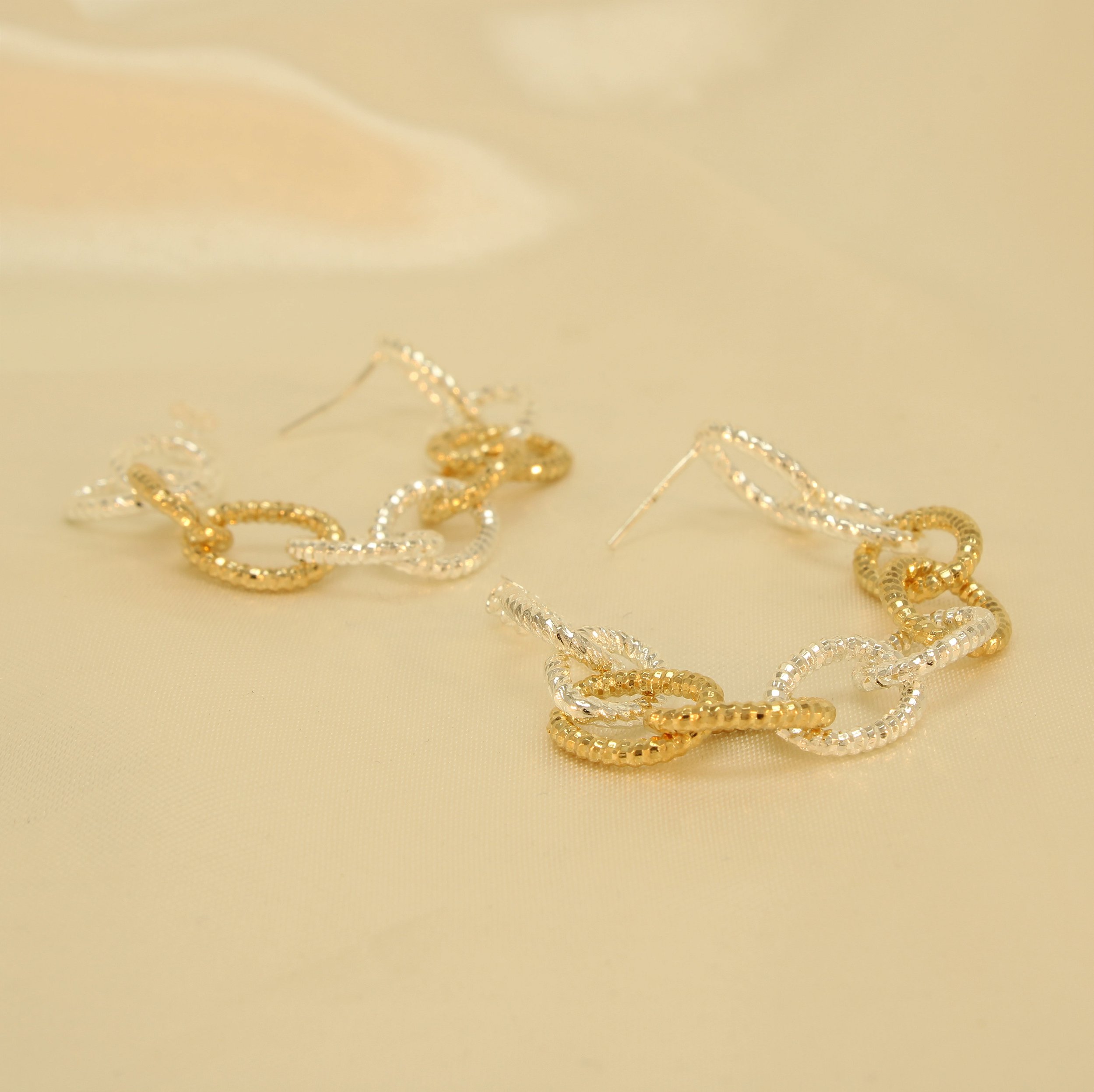 Brinco Ear Cuff com Elos Texturizados Banhado a Prata e Ouro 18k