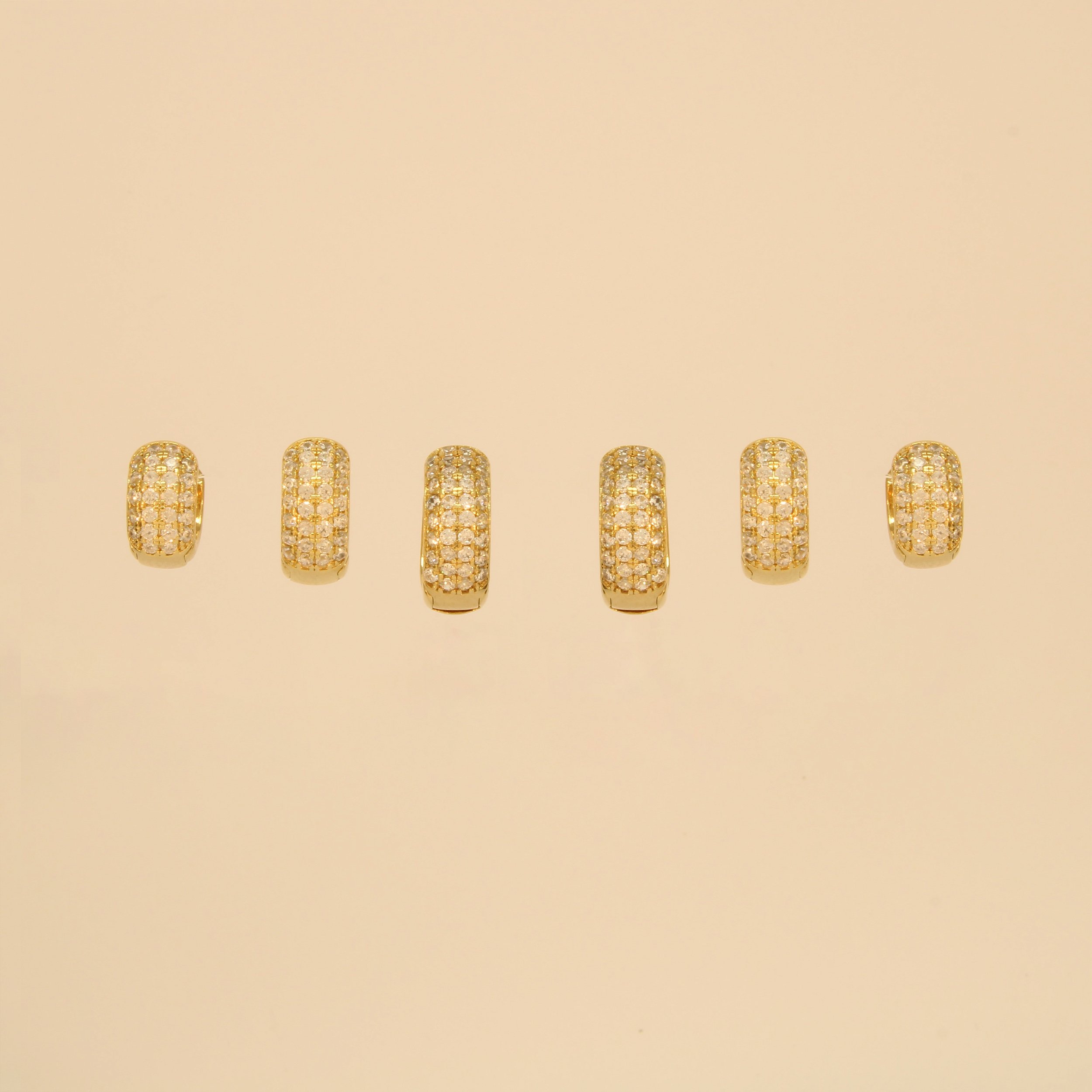 Brinco Argola em Trio Cravejado Folheado a Ouro 18k