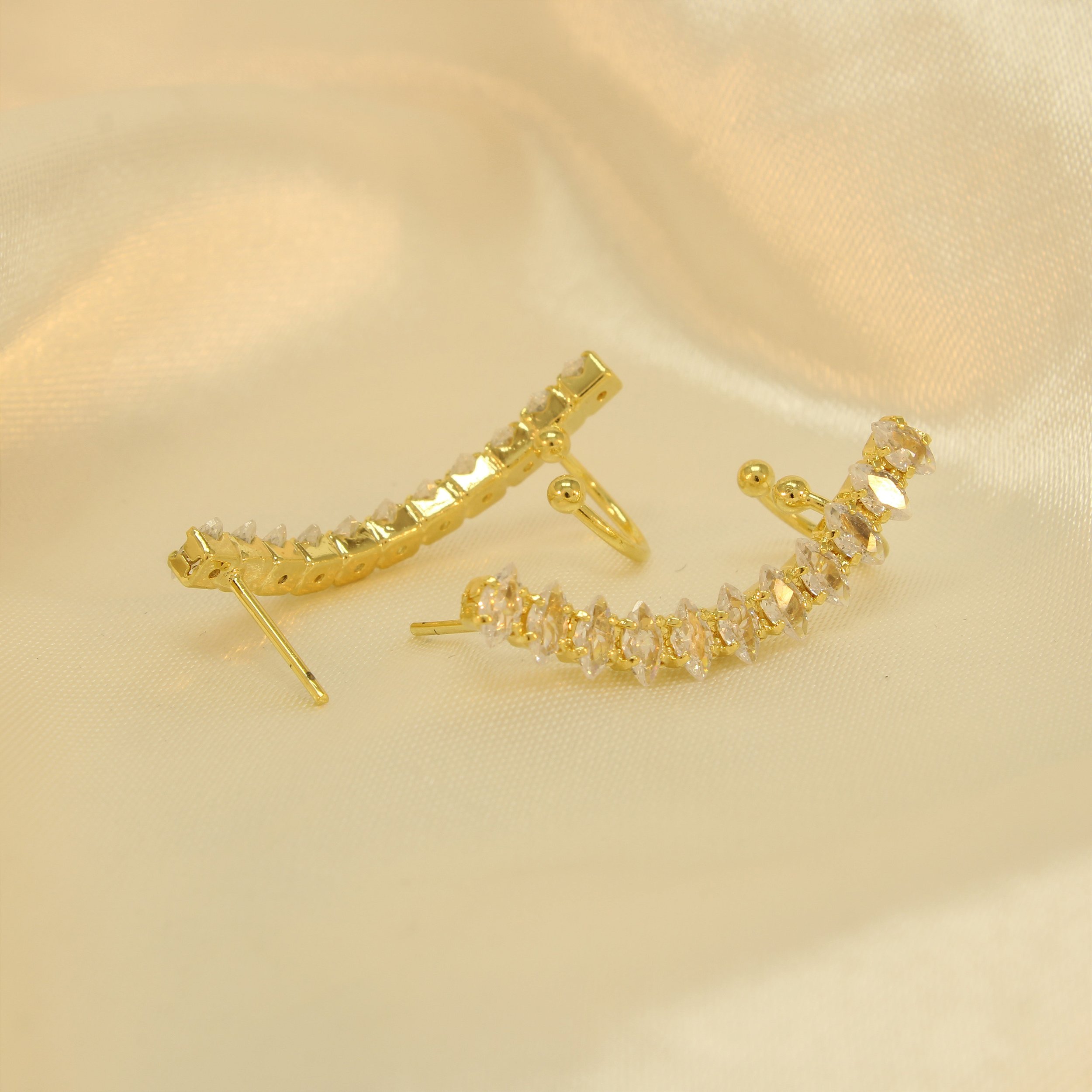 Brinco Ear Cuff Cravejado Folheado a Ouro 18k