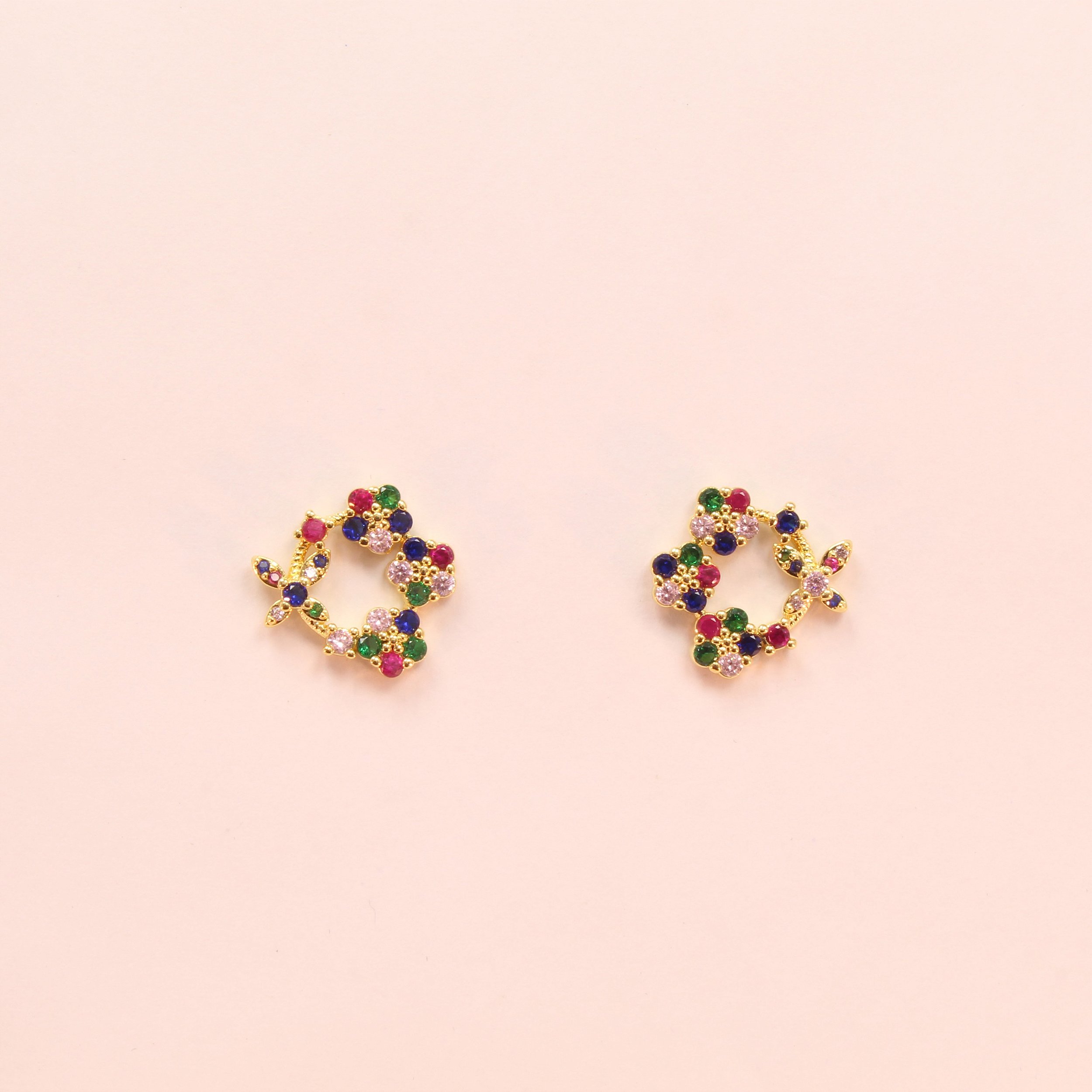 Brinco de Flores Cravejadas em Zircônias Multicoloridas Folheado a Ouro 18k