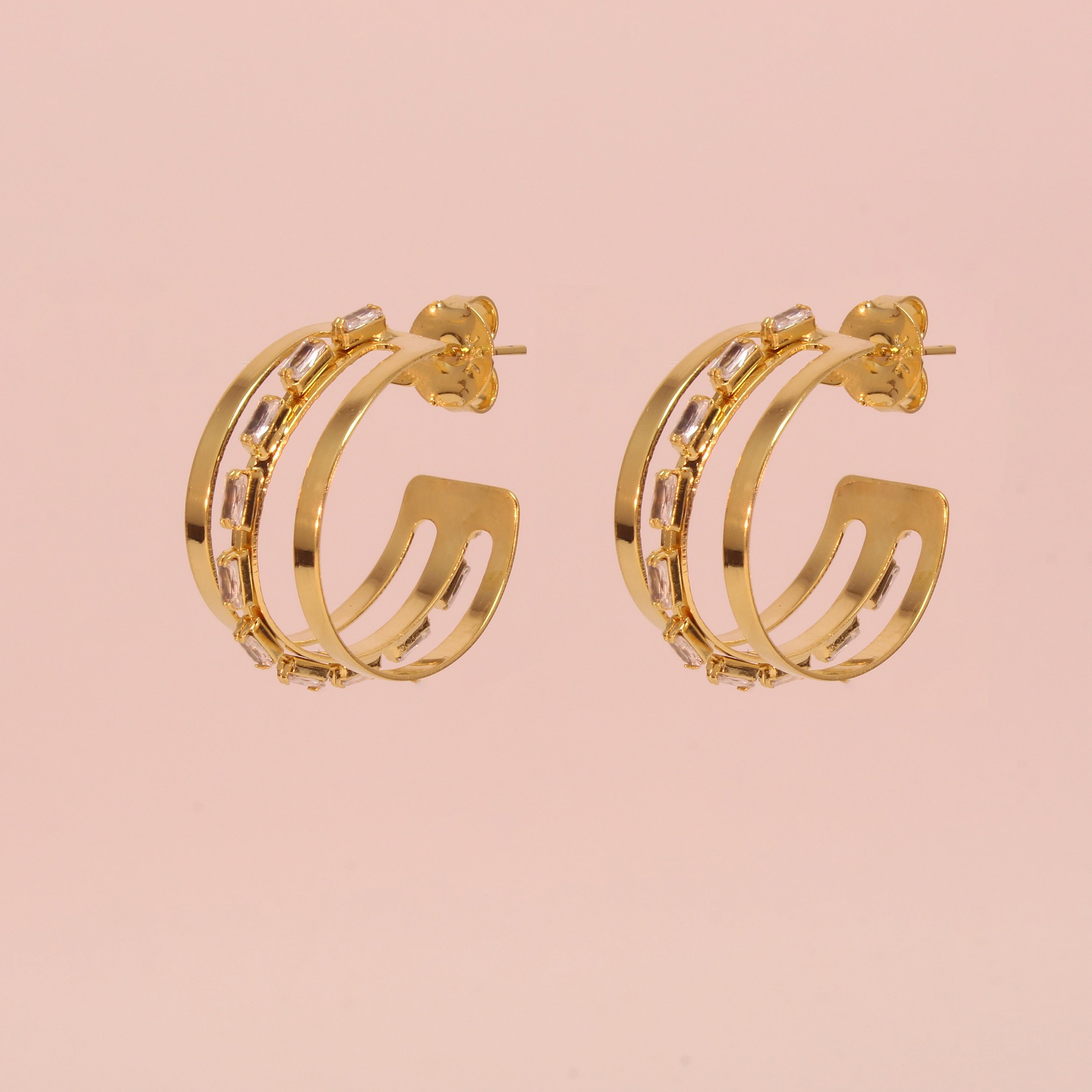 Brinco Argola Vazado com Zircônia Cristal Folheado a Ouro 18k
