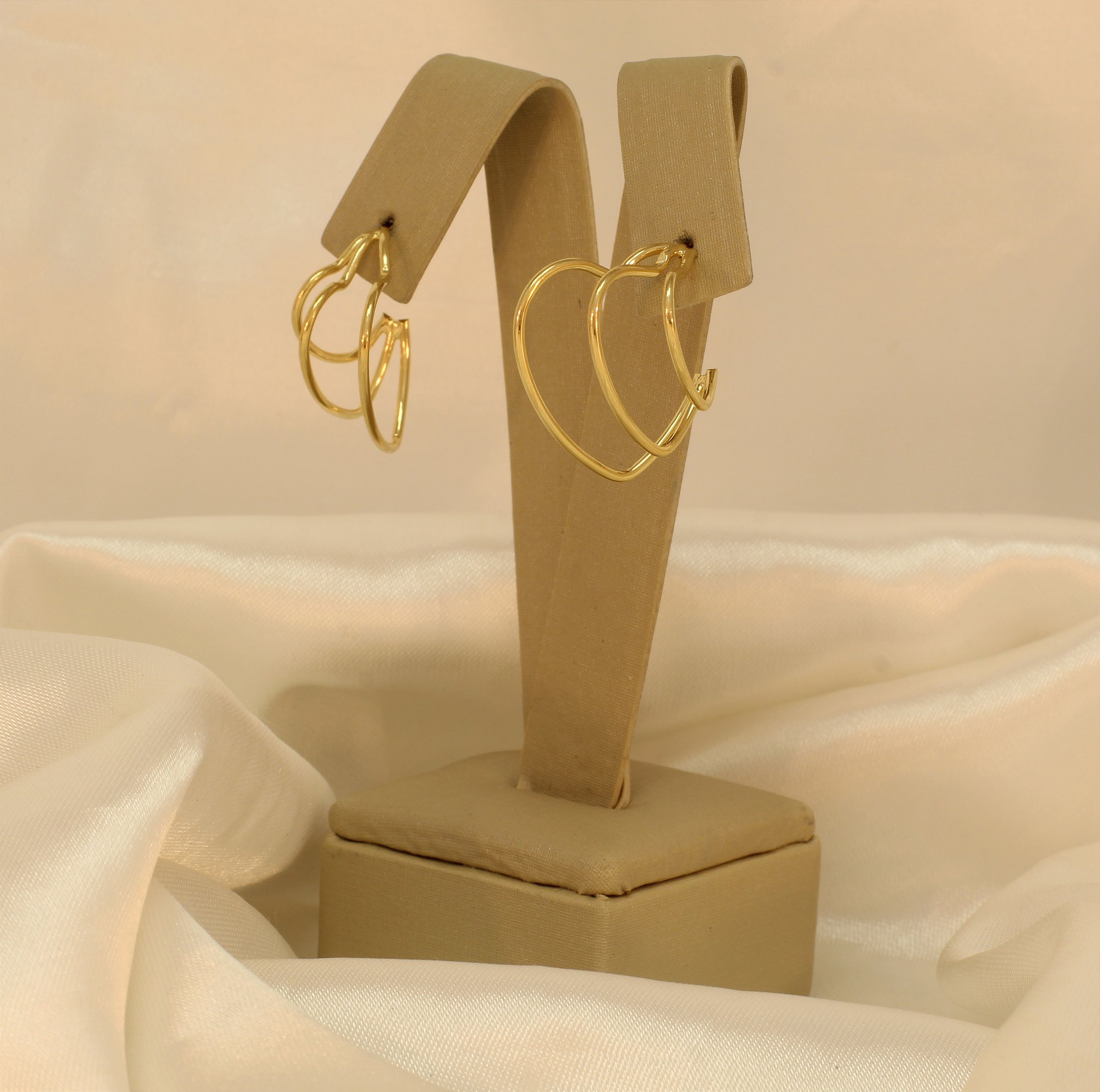 Brinco Coração Aro Triplo Folheado a Ouro 18k