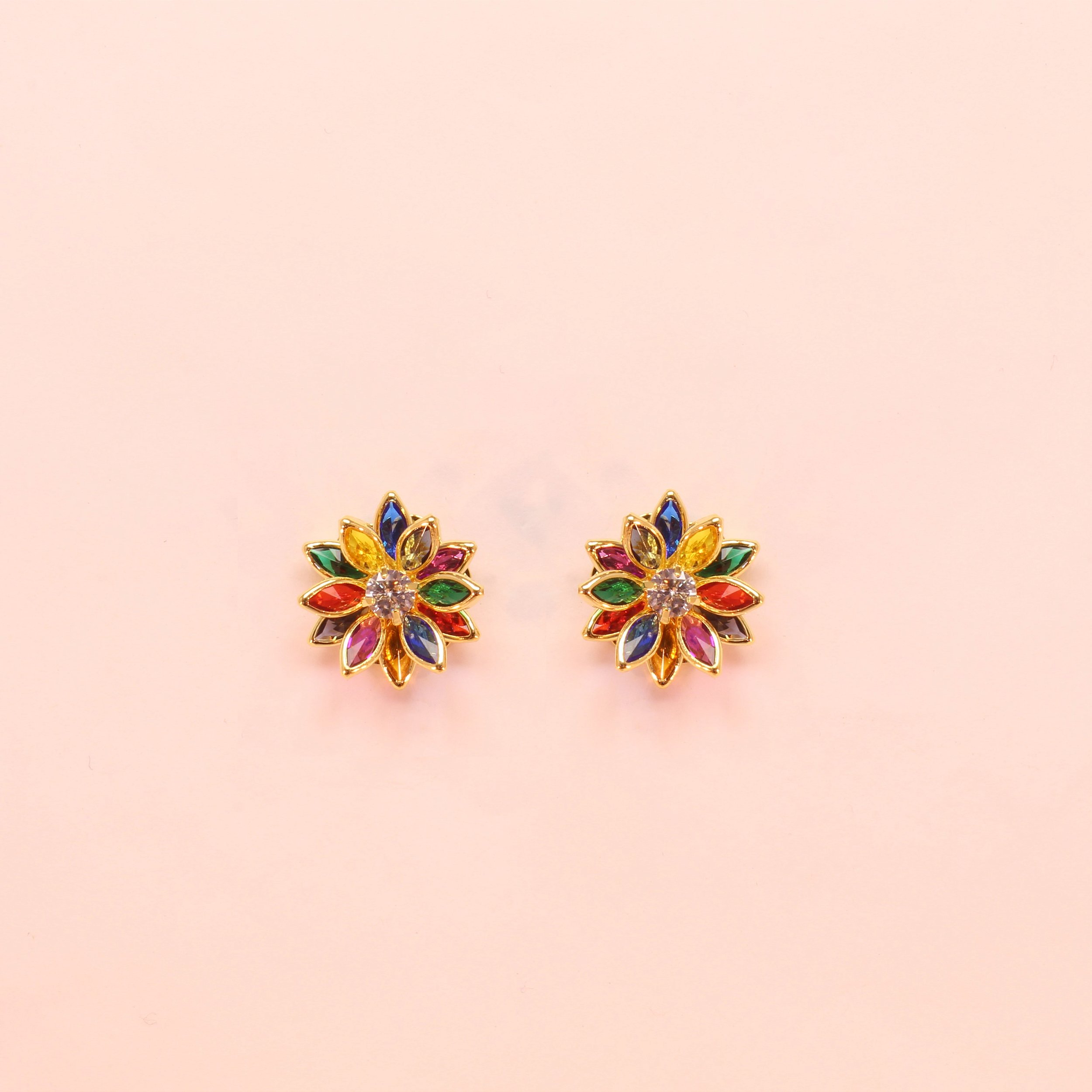 Brinco de Flor com Zircônia Multicoloridas Folheado a Ouro 18k