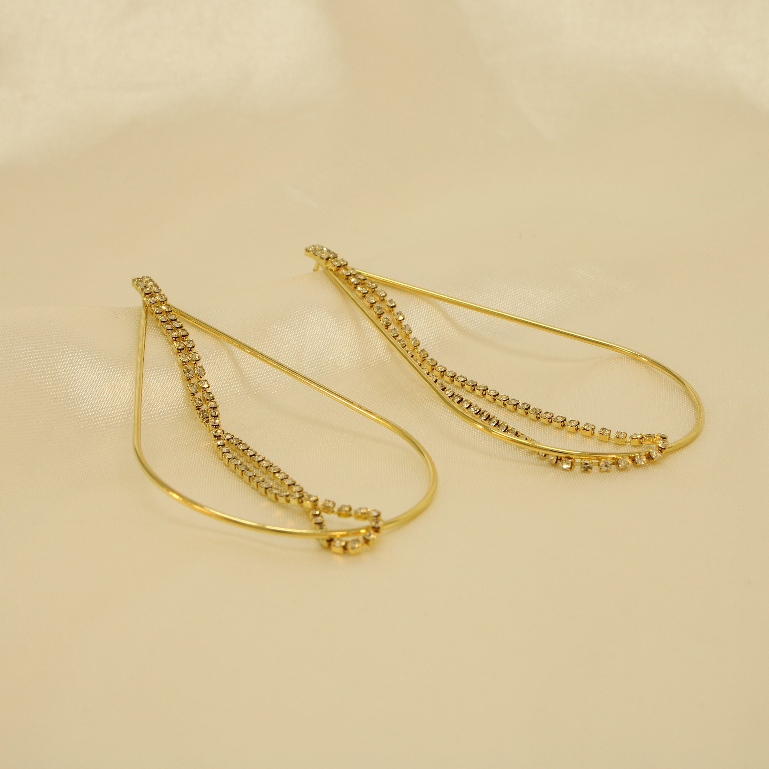 Brinco com Aro Vazado e Fios Folheado a Ouro 18k