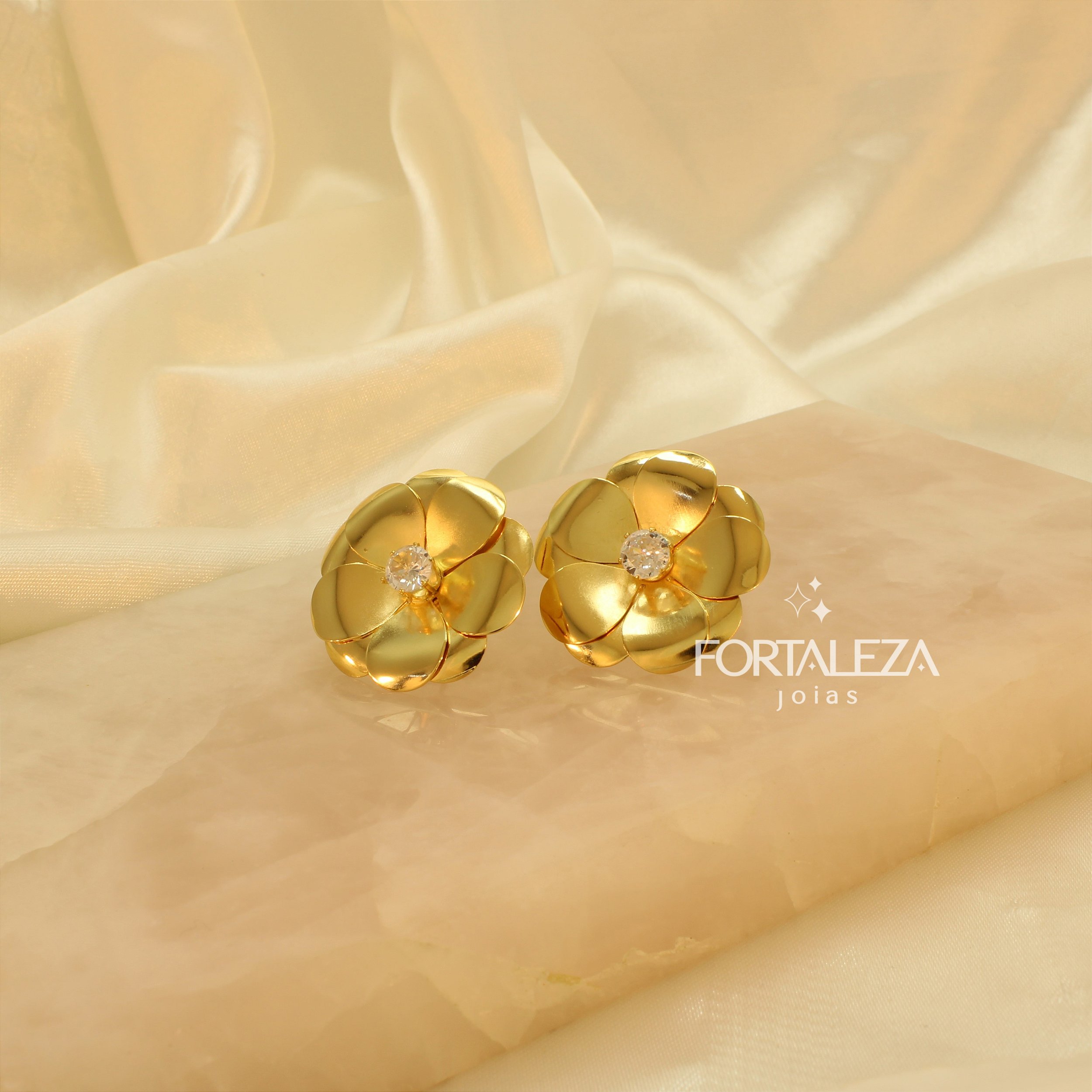 Brinco de Flor com Zircônia Cristal Banhado a Ouro 18k