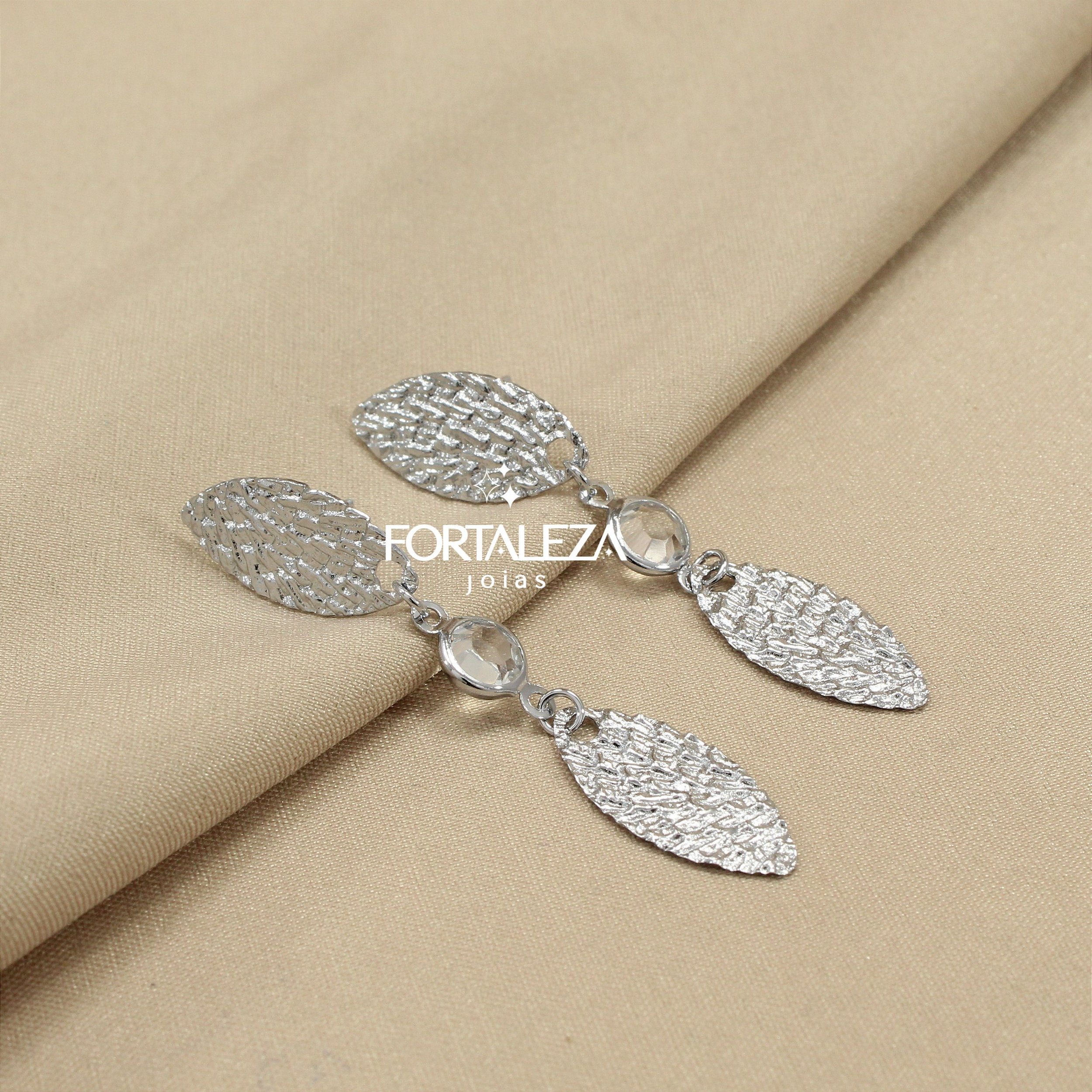 Brinco Craquelado com Zircônia Cristal Banhado a Ouro Branco
