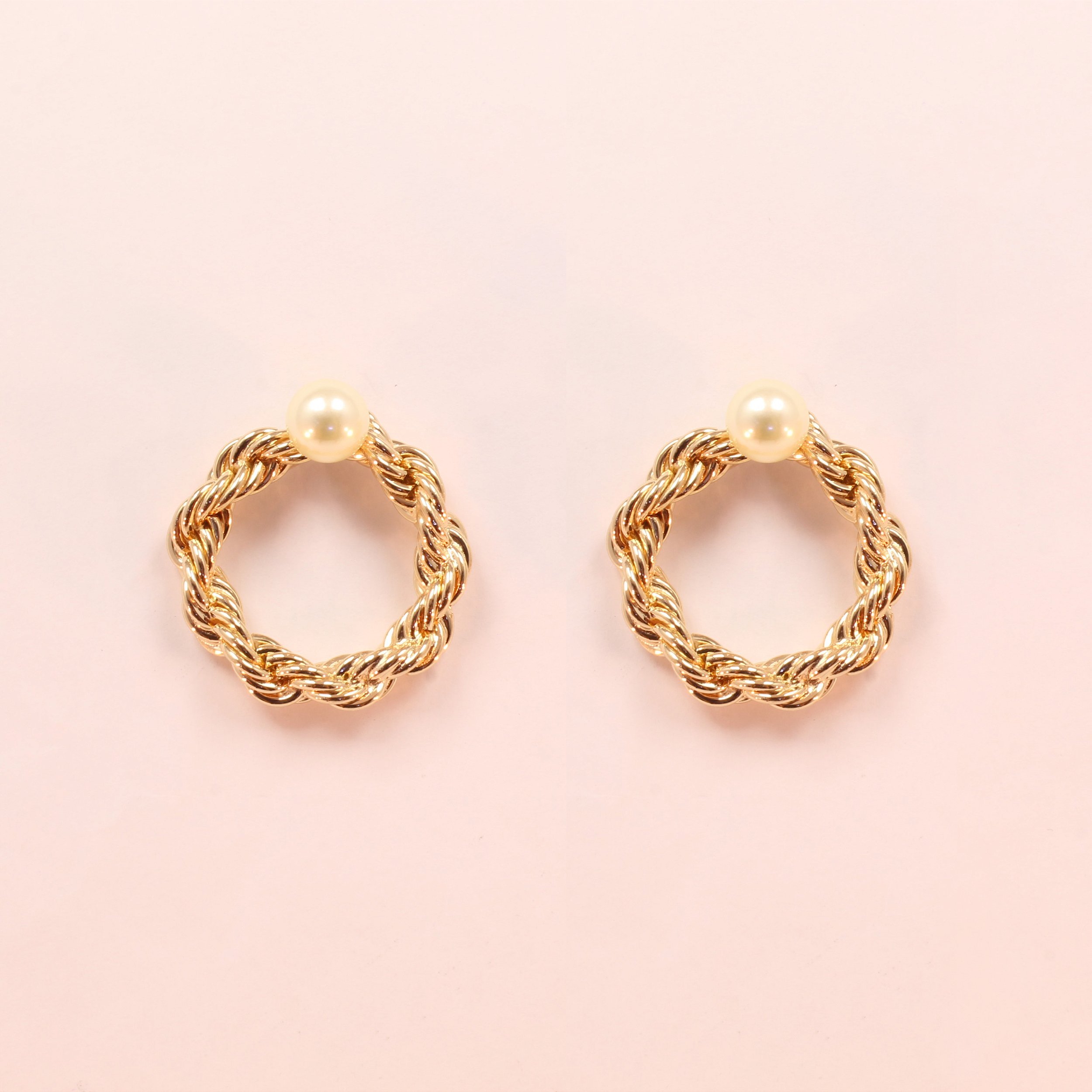 Brinco Torcido com Detalhe em Pérola Folheado a Ouro 18k