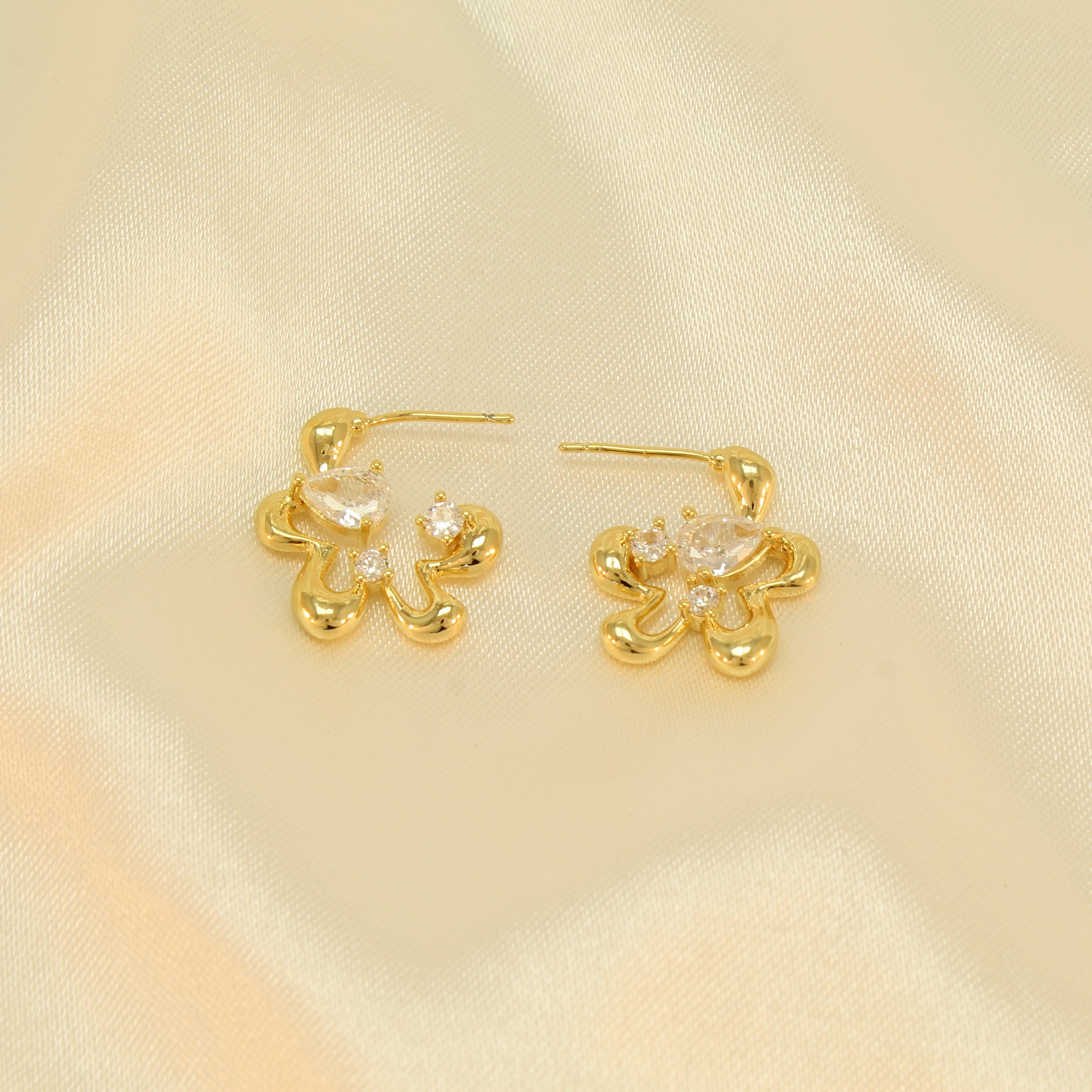 Brinco com Design de Flor e Zircônia Cristal Banhado a Ouro 18k