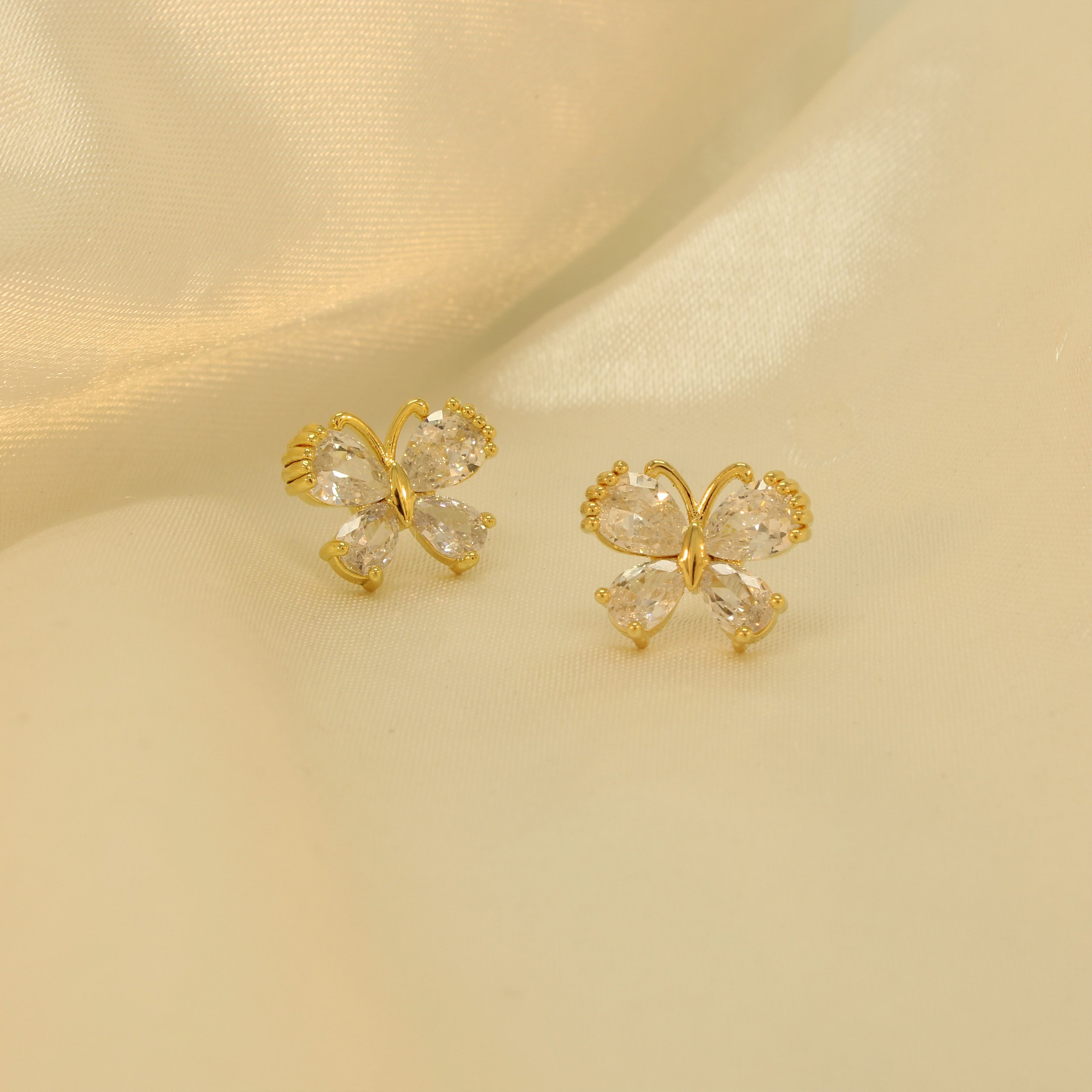 Brinco de Borboleta com Zircônia Cristal Banhado a Ouro 18k