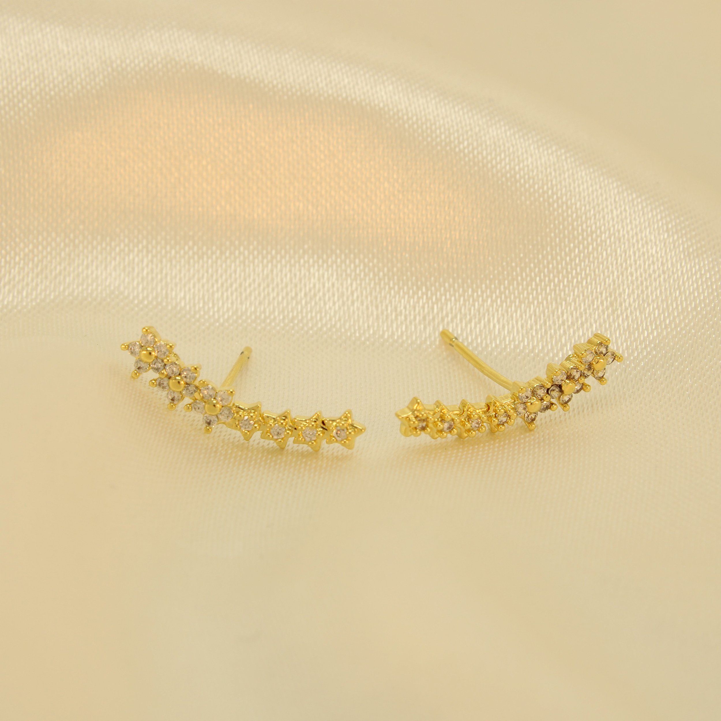 Brinco Mini Ear Cuff com Desing de Flores e Estrelas Cravejadas em Zircônia Cristal Banhado a Ouro 18k