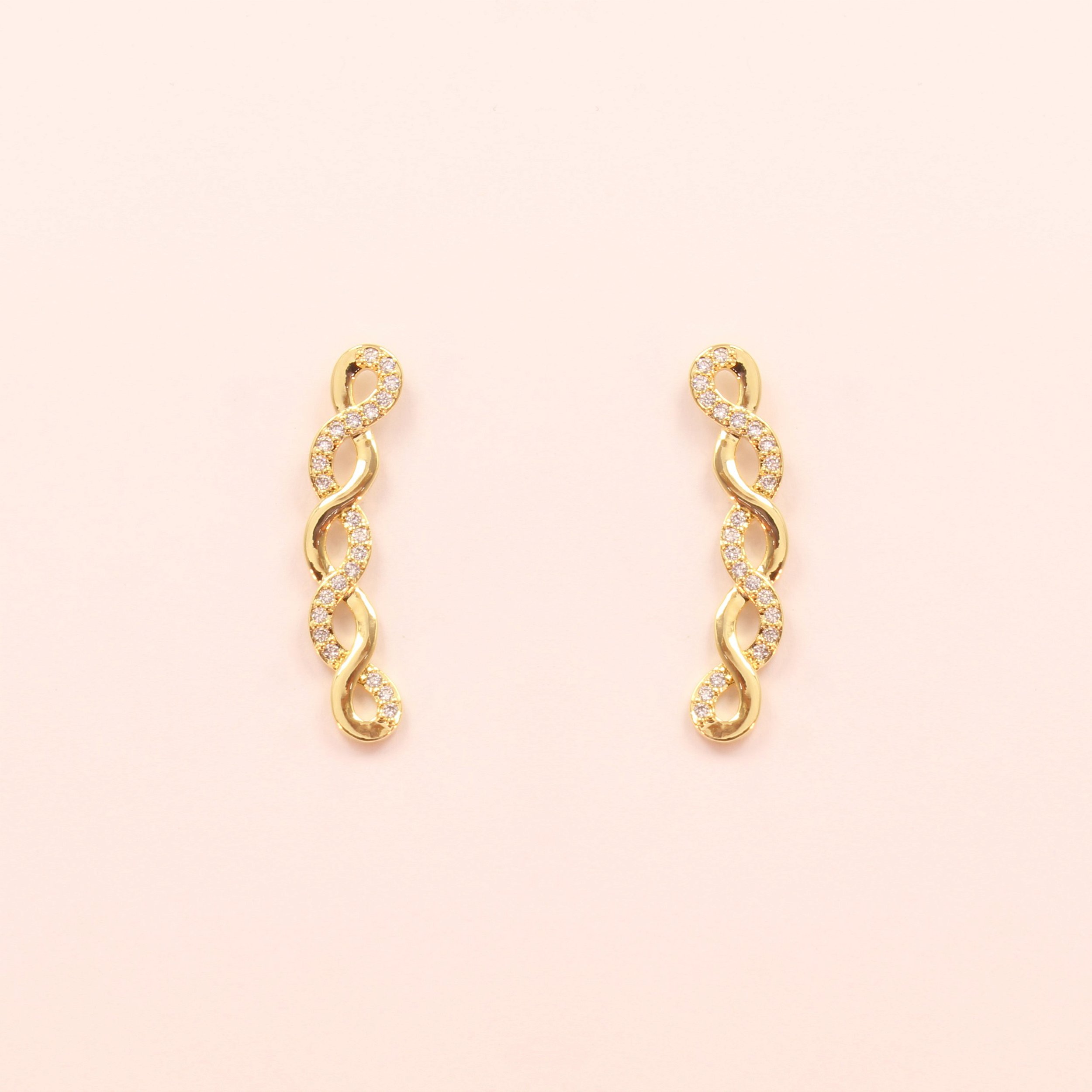 Brinco Entrelaçado com Detalhes em Zircônia Cristal Banhado a Ouro 18k