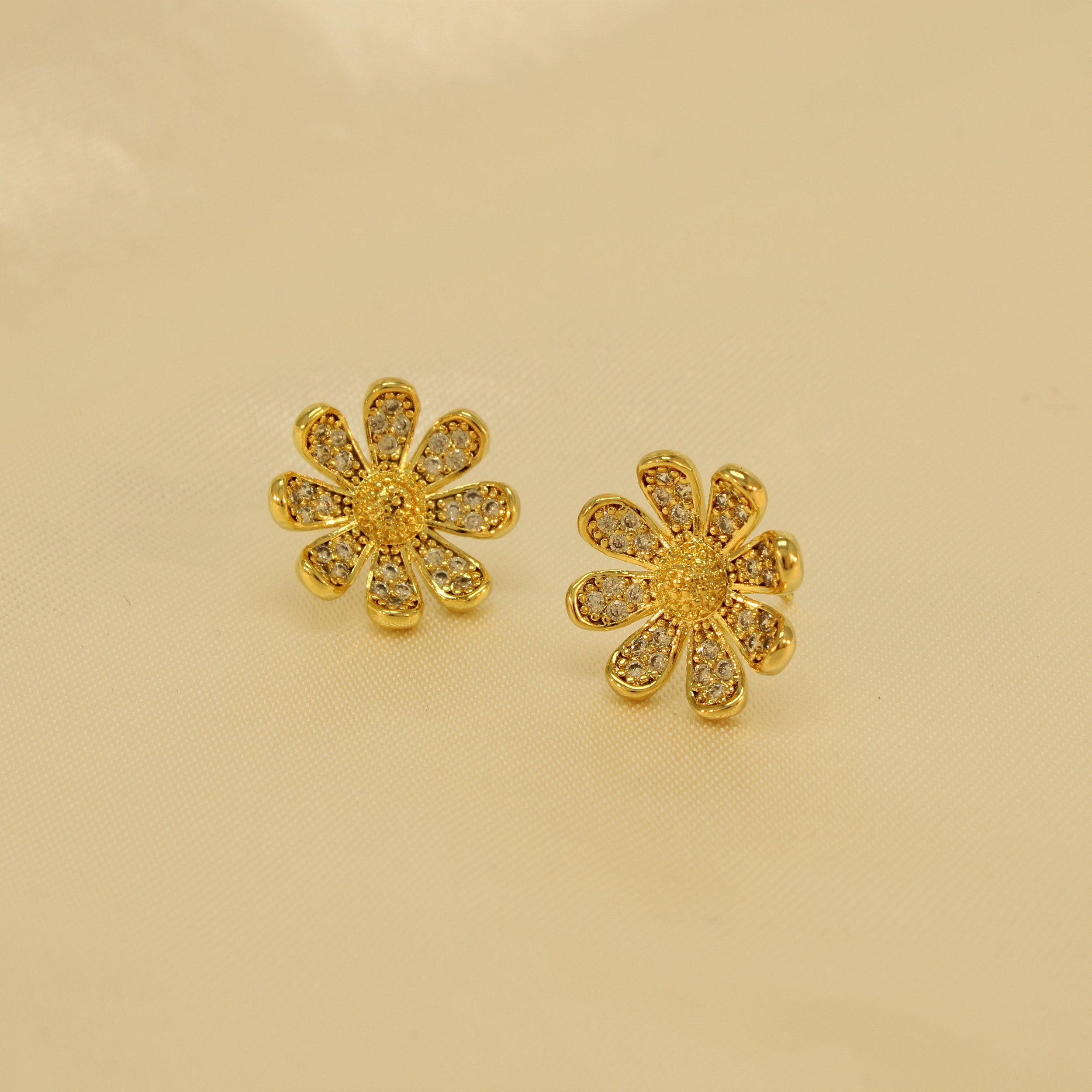 Brinco de Flor Cravejado em Zircônia Cristal Banhado a Ouro 18k