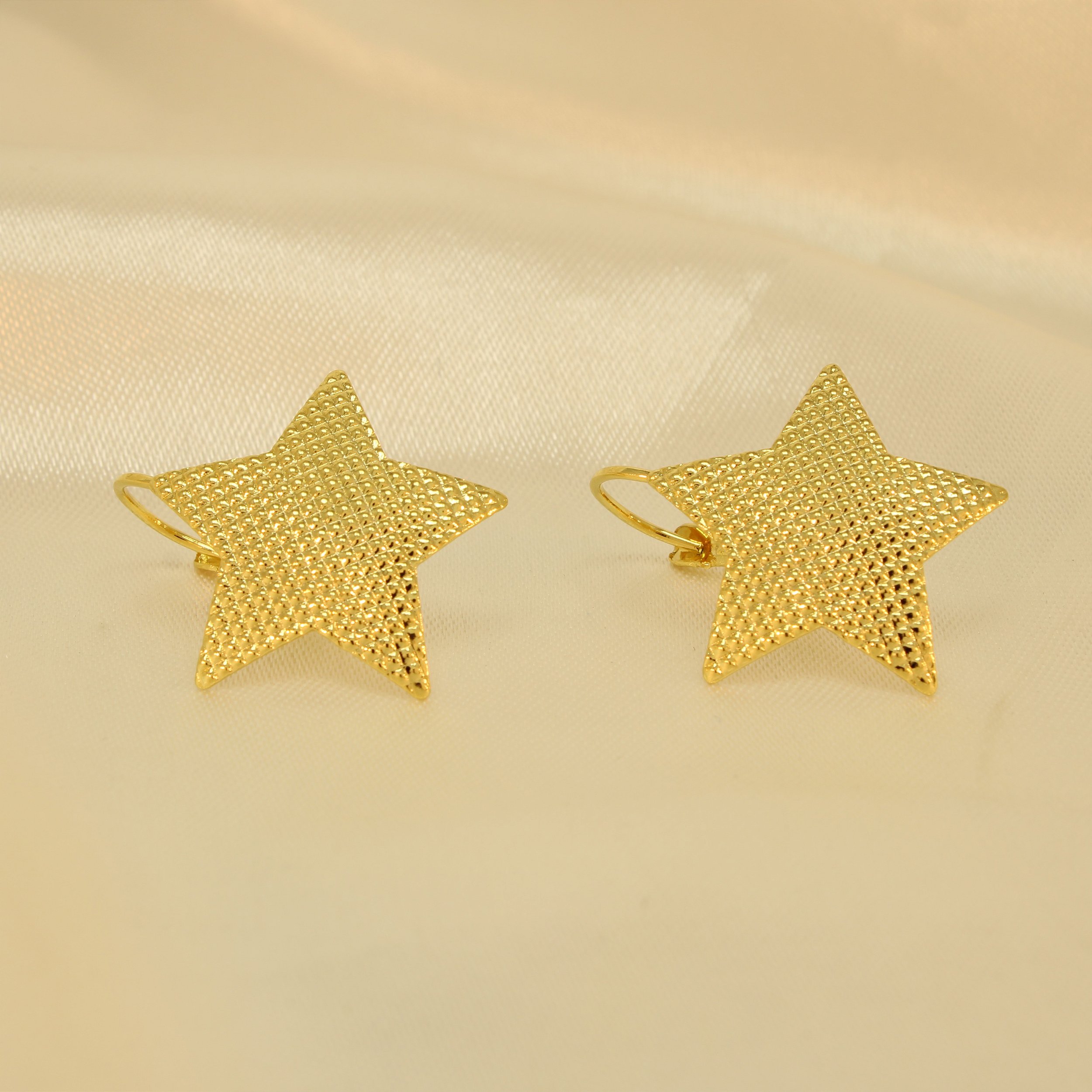 Brinco de Estrela Texturizada com Fecho Italiano Banhado a Ouro 18k