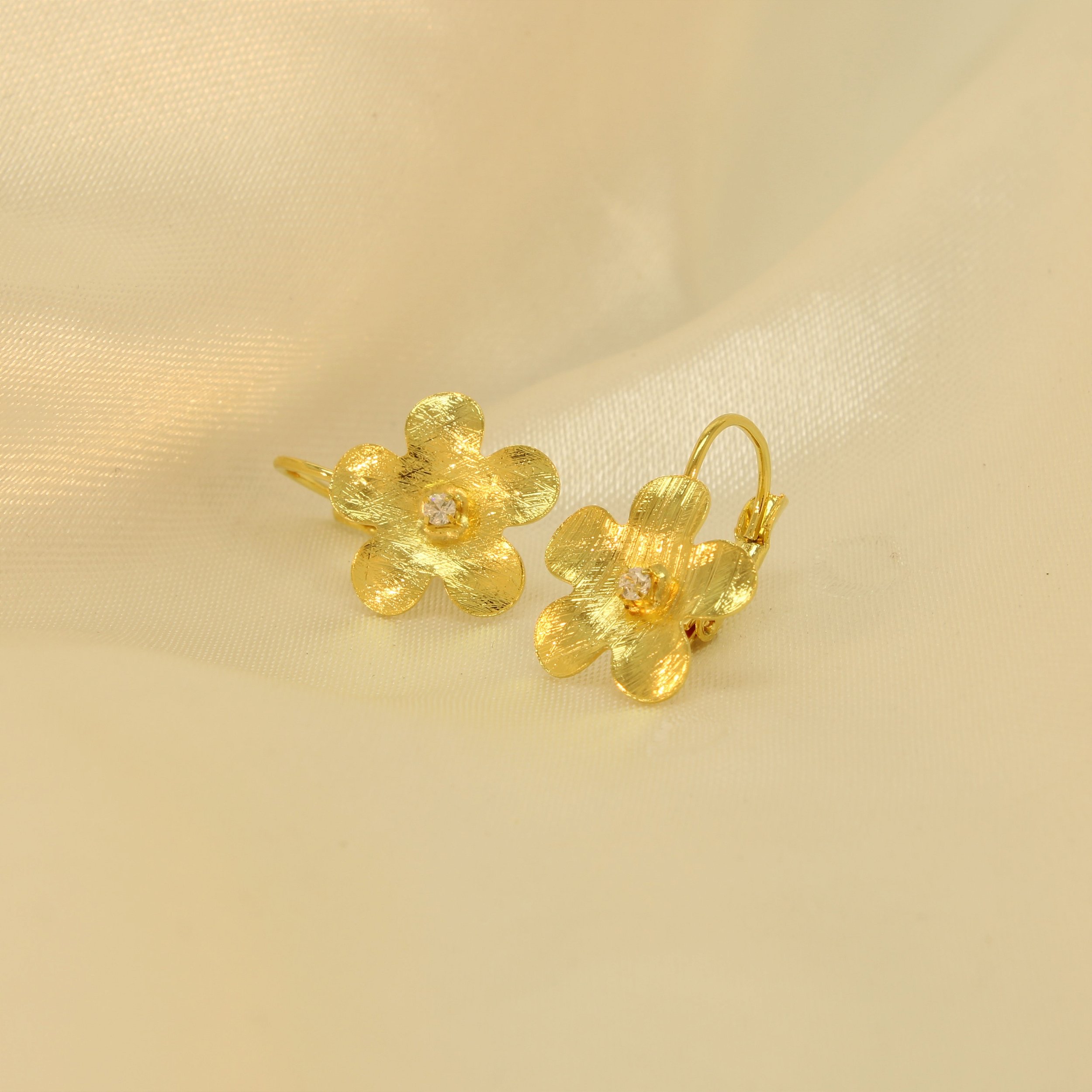 Brinco de Flor com Detalhe em Zircônia Cristal Banhado a Ouro 18k