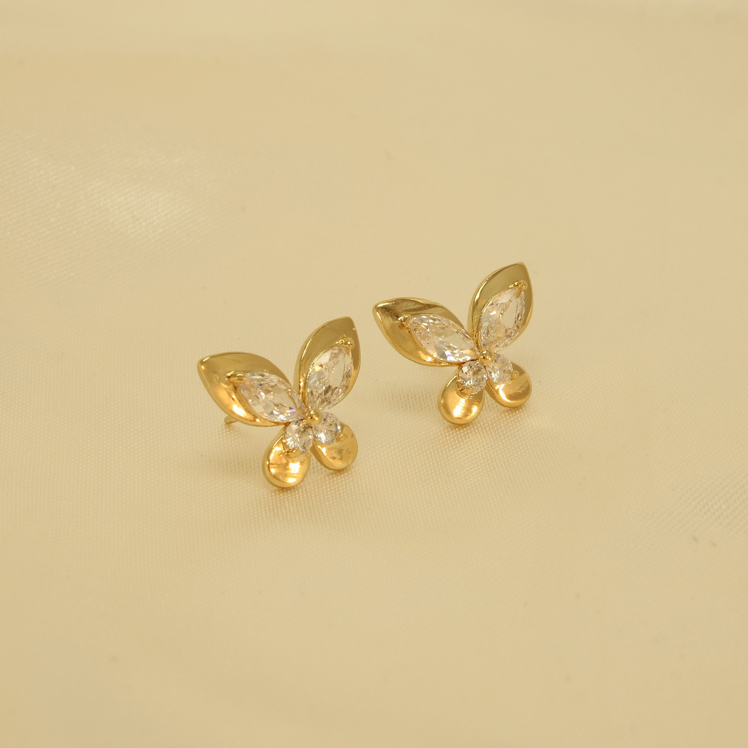 Brinco Borboleta com Zircônia Cristal Banhado a Ouro 18k