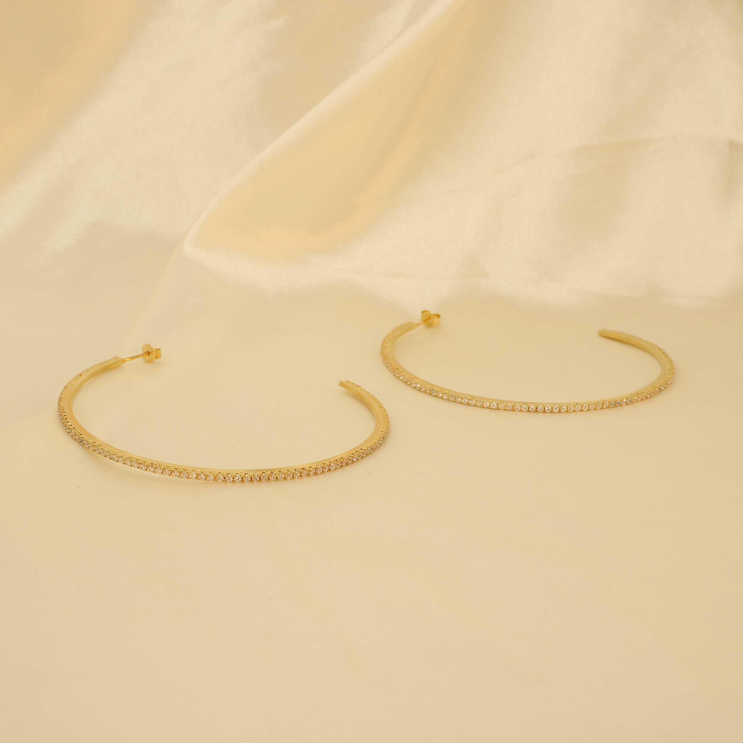 Brinco Argola Cravejado em Zircônia Cristal Banhado a Ouro 18k
