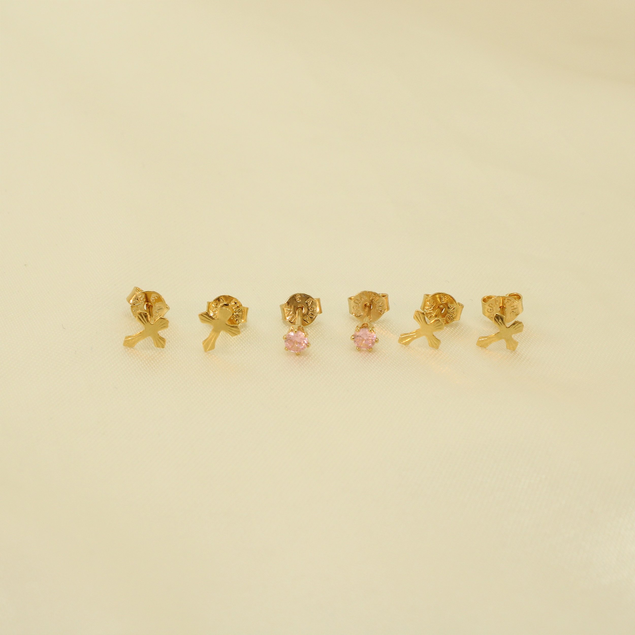 Brinco em Trio Cruz e Ponto de Luz em Zircônia Banhado a Ouro 18k