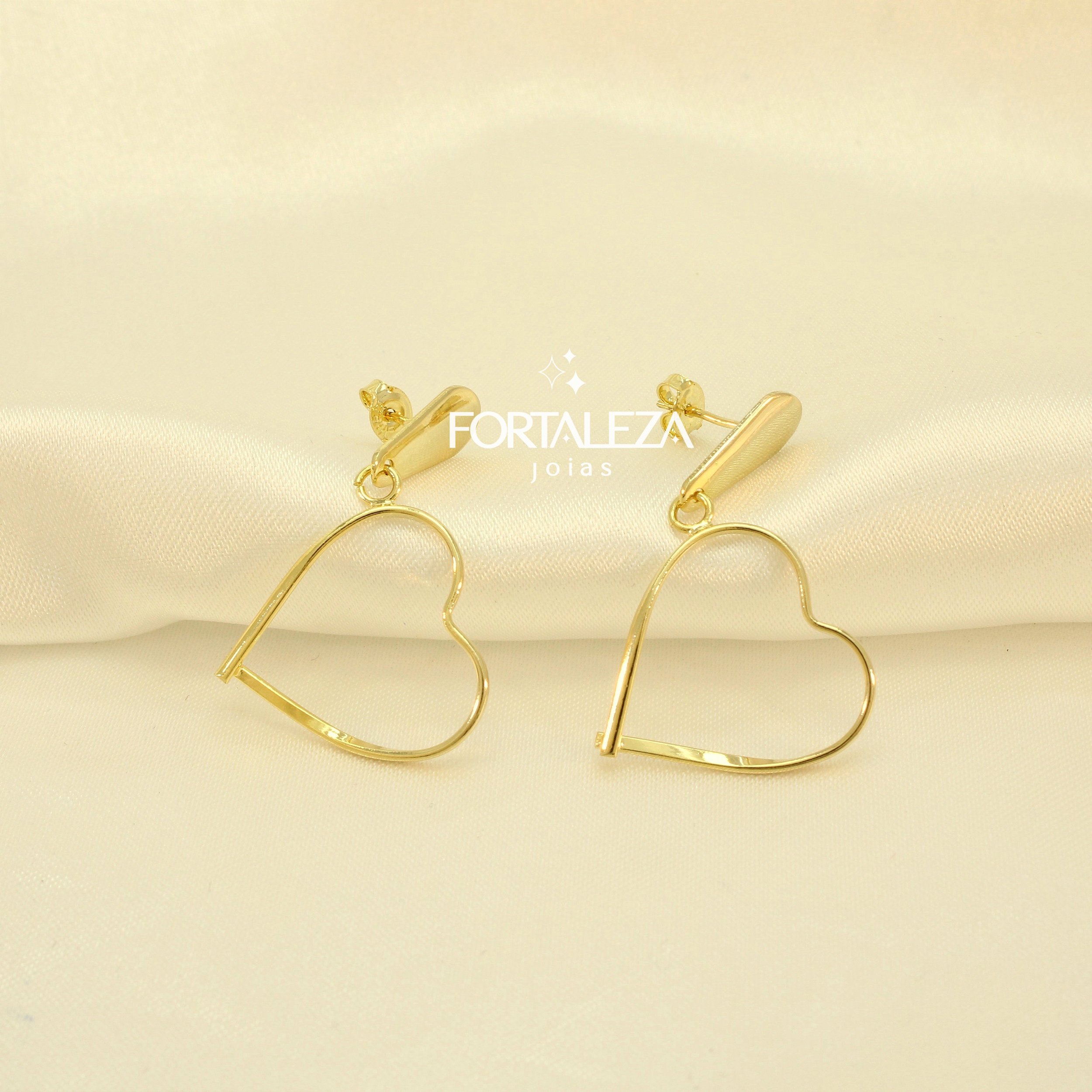 Brinco de Coração Vazado Banhado a Ouro 18k