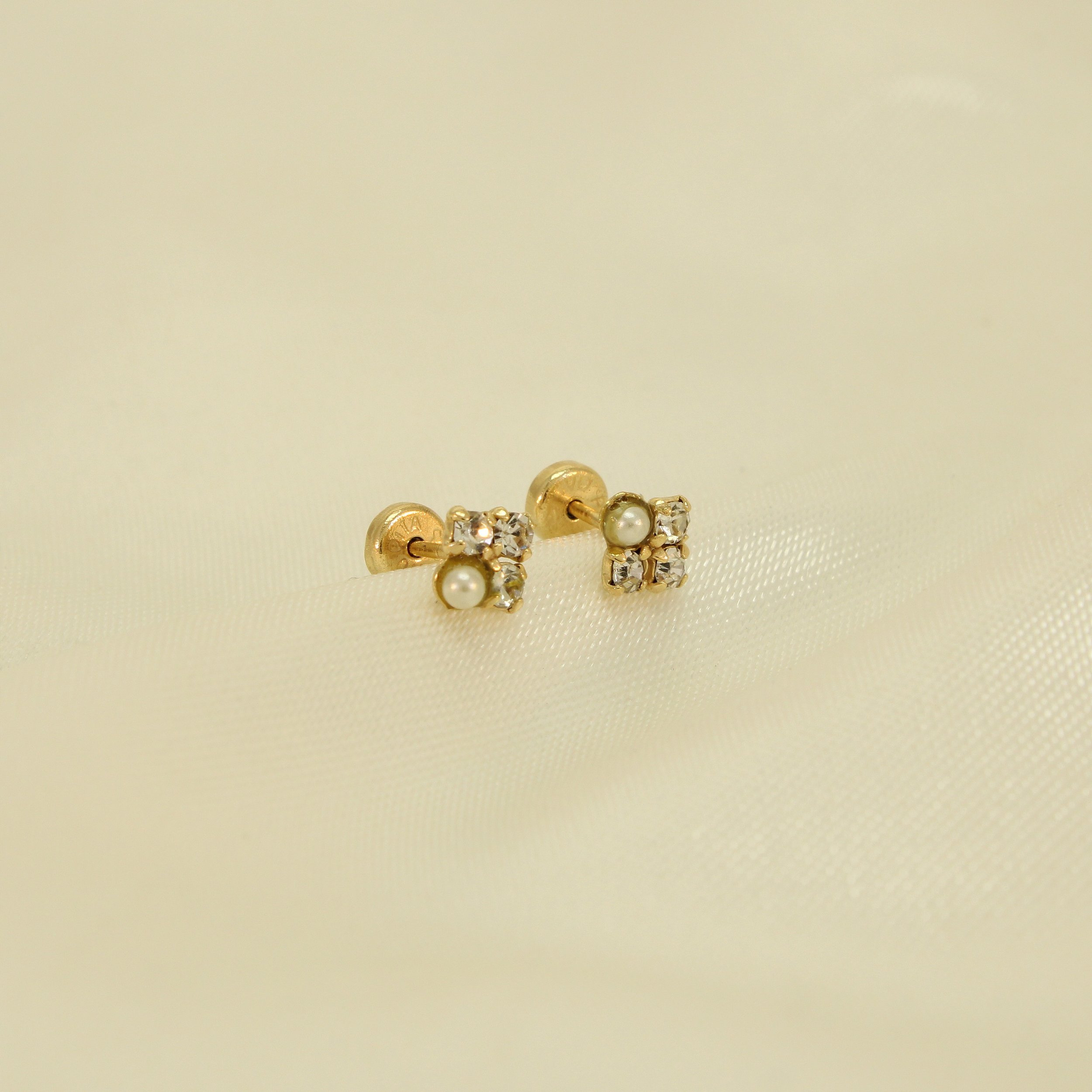 Brinco com Pérola e Zircônia Cristal Banhado a Ouro 18k