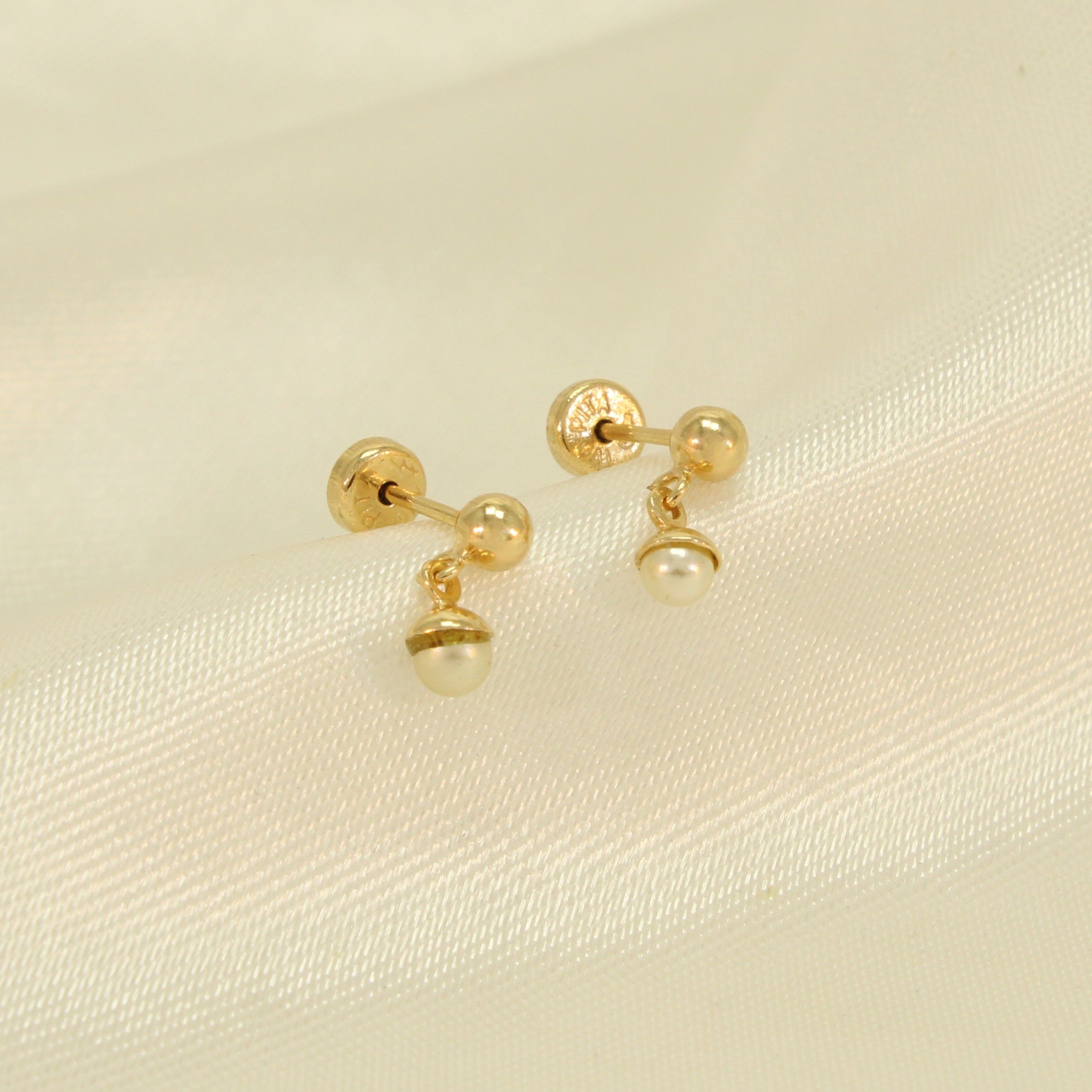Brinco de Bolinha e Pérola Banhado a Ouro 18k