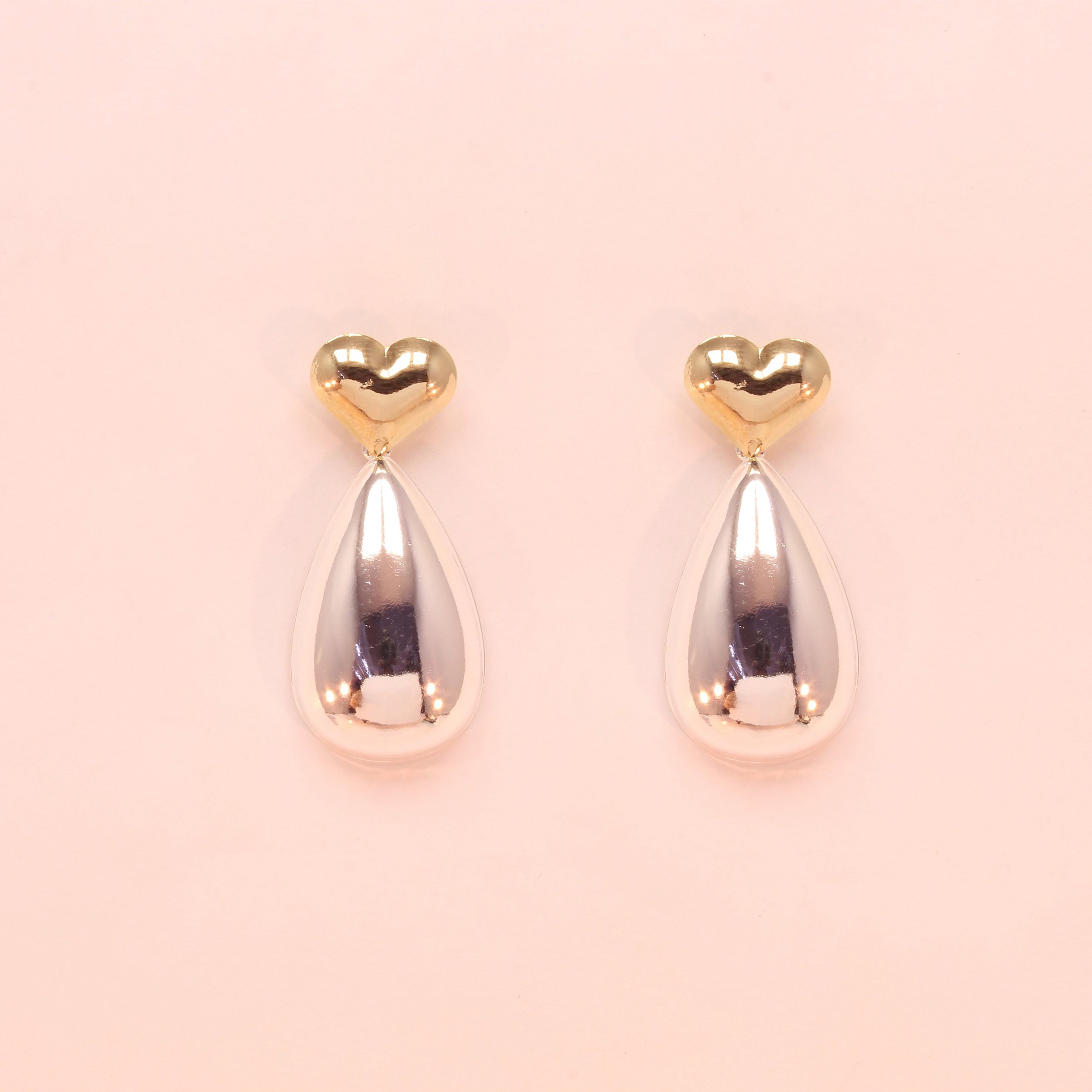 Brinco Gota e Coração Folheado a Prata e Ouro 18k