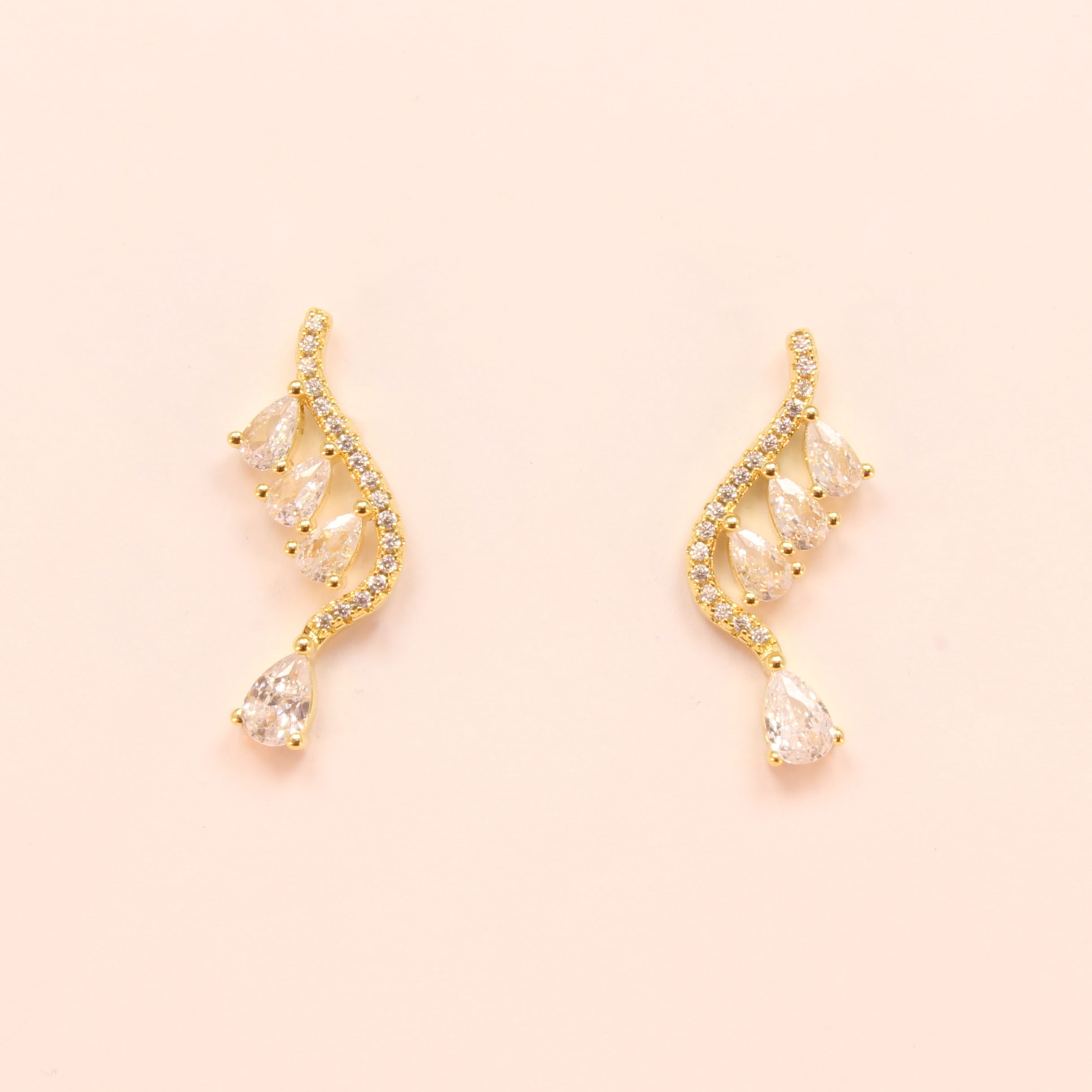 Brinco Trabalhado em Zircônia Cristal Folheado a Ouro 18k