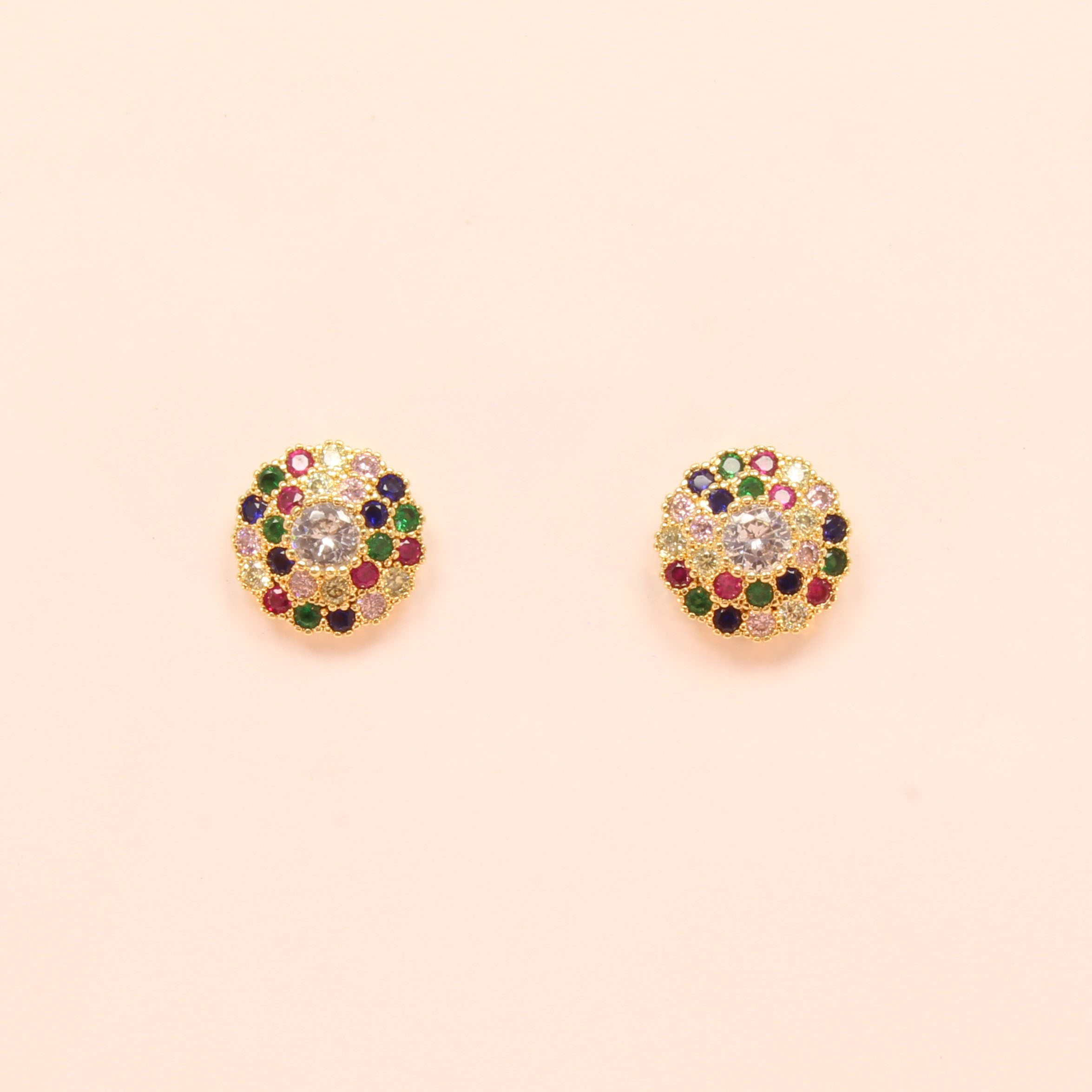 Brinco Trabalhado em Zircônias Multicoloridas Folheado a Ouro 18k