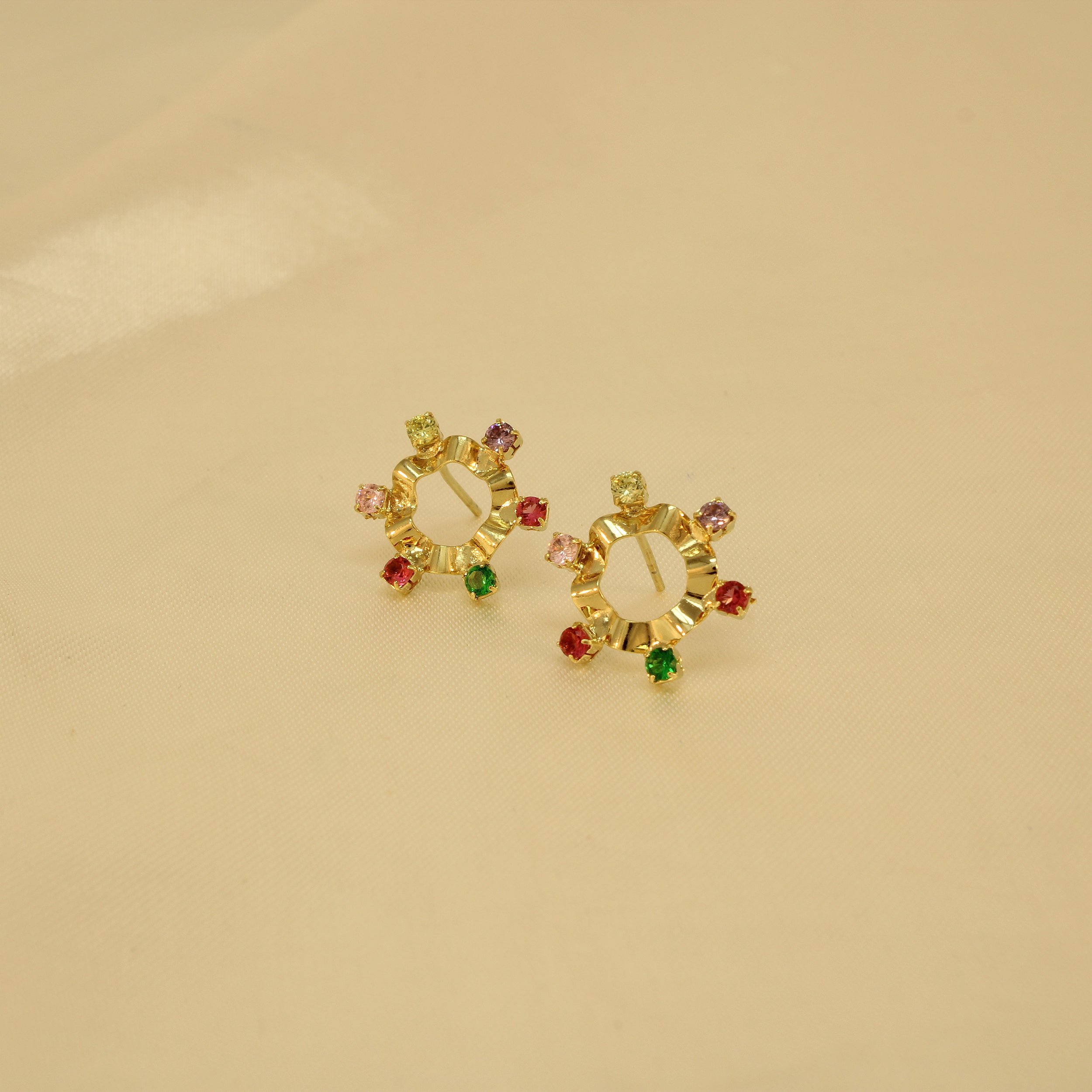 Brinco Trabalhado em Zircônias Banhado a Ouro 18k