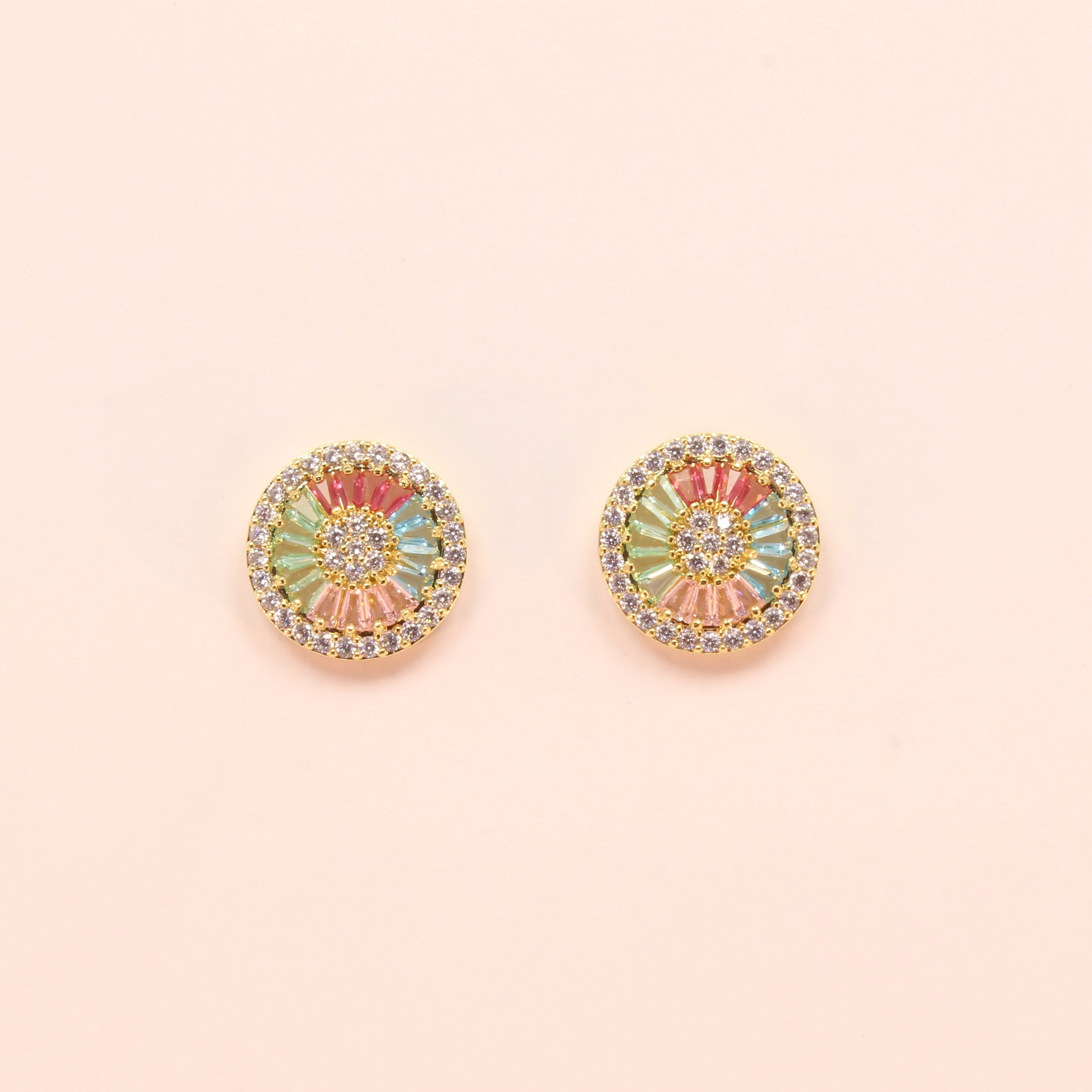 Brinco Trabalhado em Zircônia Multicolorida Folheado a Ouro 18k
