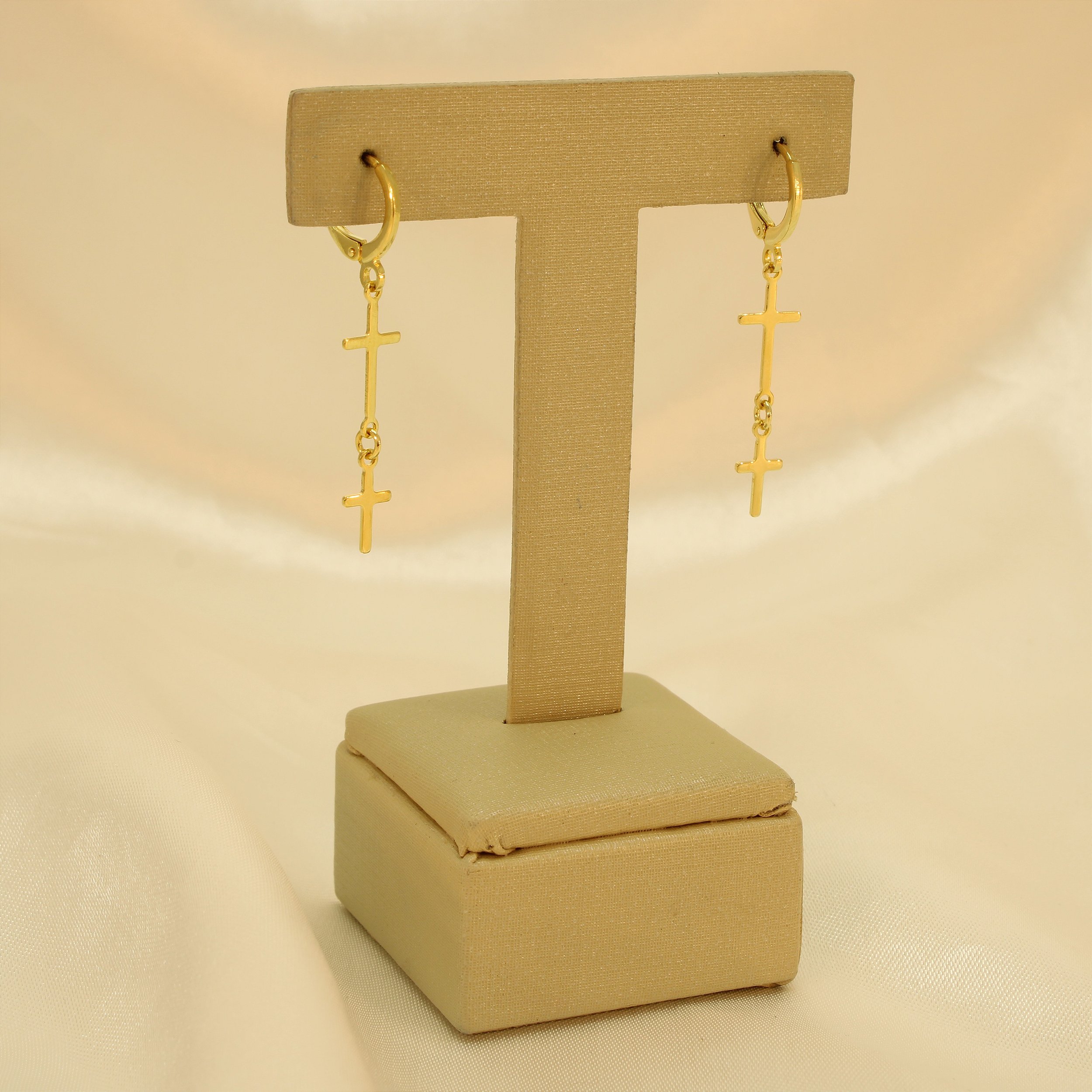 Brinco Argola Tranqueta de Cruz Banhado a Ouro 18k