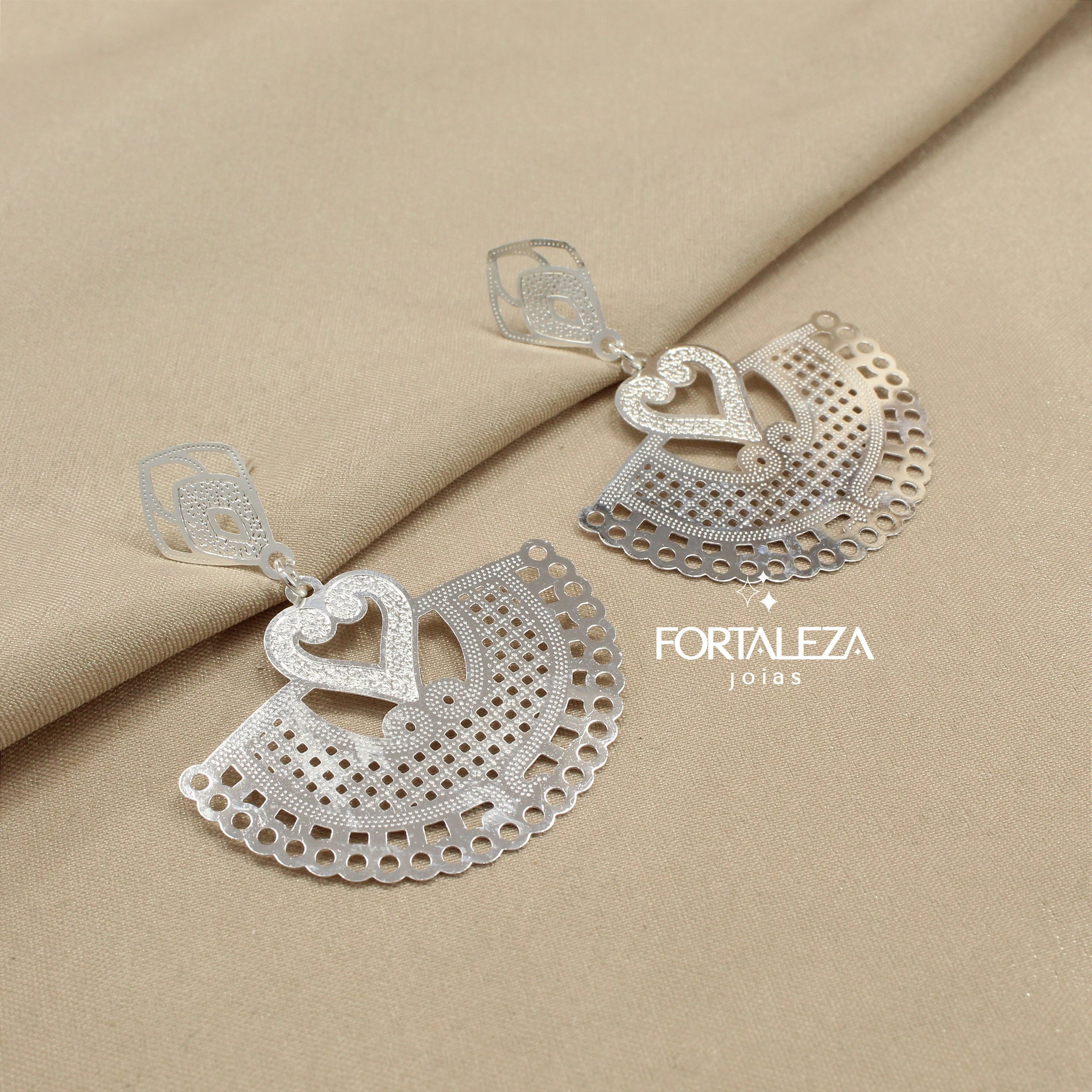 Brinco com Design Rendado Banhado com 30 Milésimos de Teor de Prata 925 e Finalizado com Verniz de Nanotecnologia