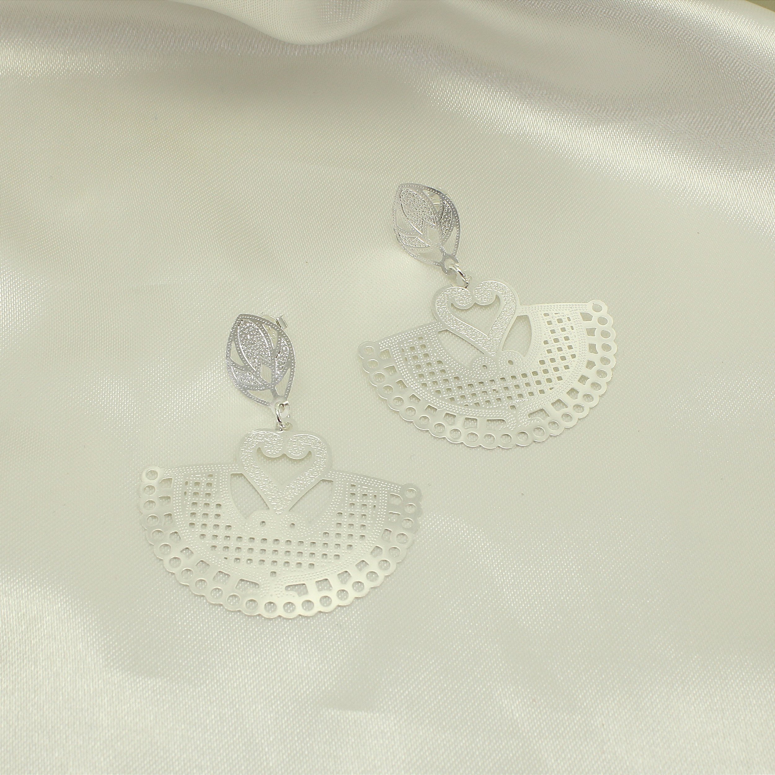 Brinco com Design Rendado Banhado com 30 Milésimos de Teor de Prata 925 e Finalizado com Verniz de Nanotecnologia