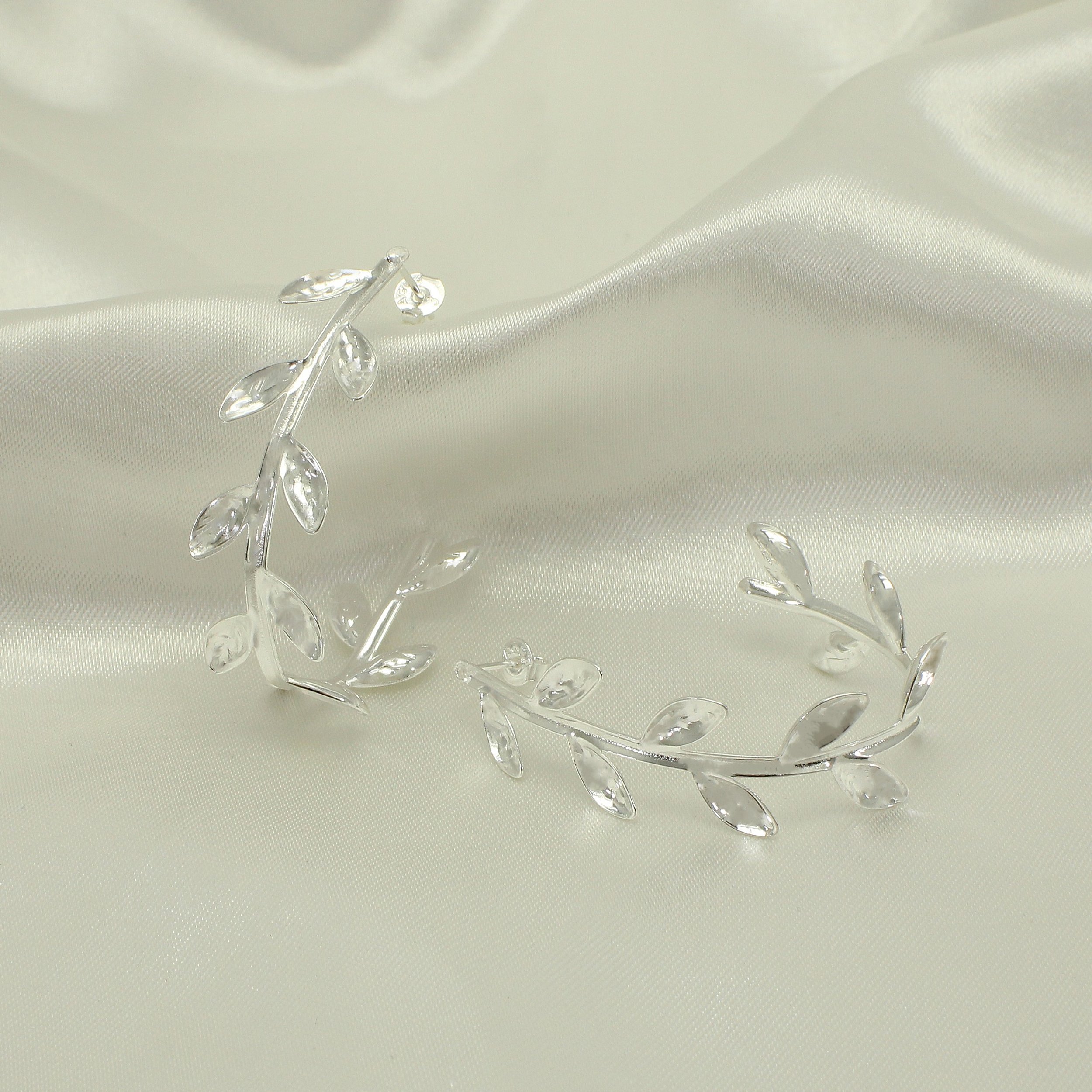 Brinco Argola com Detalhe de Folhas Banhado com 30 Milésimos de Teor de Prata 925 e Finalizado com Verniz de Nanotecnologia