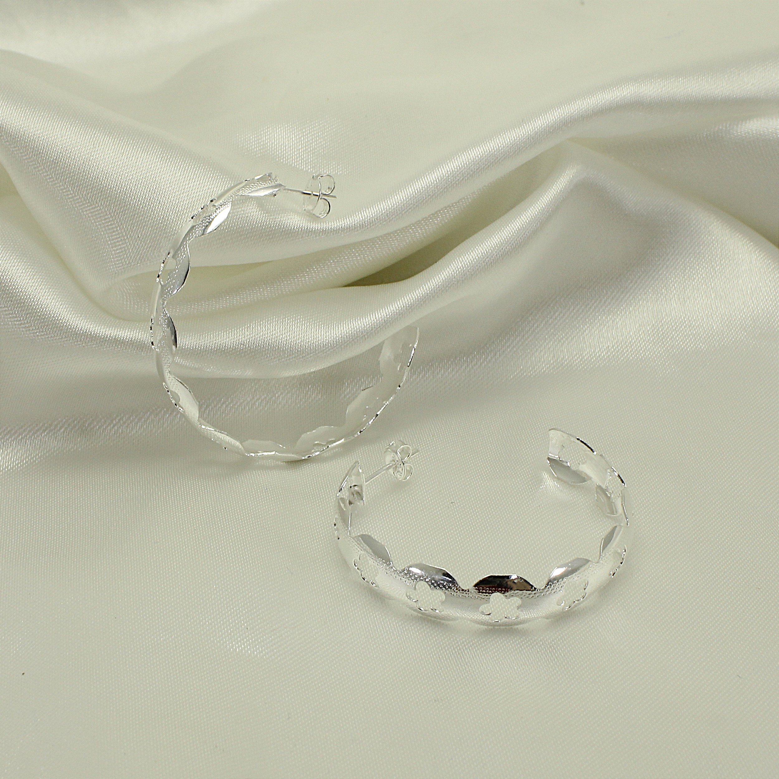 Brinco Argola com Detalhe de Flor Banhado com 30 Milésimos de Teor de Prata 925 e Finalizado com Verniz de Nanotecnologia