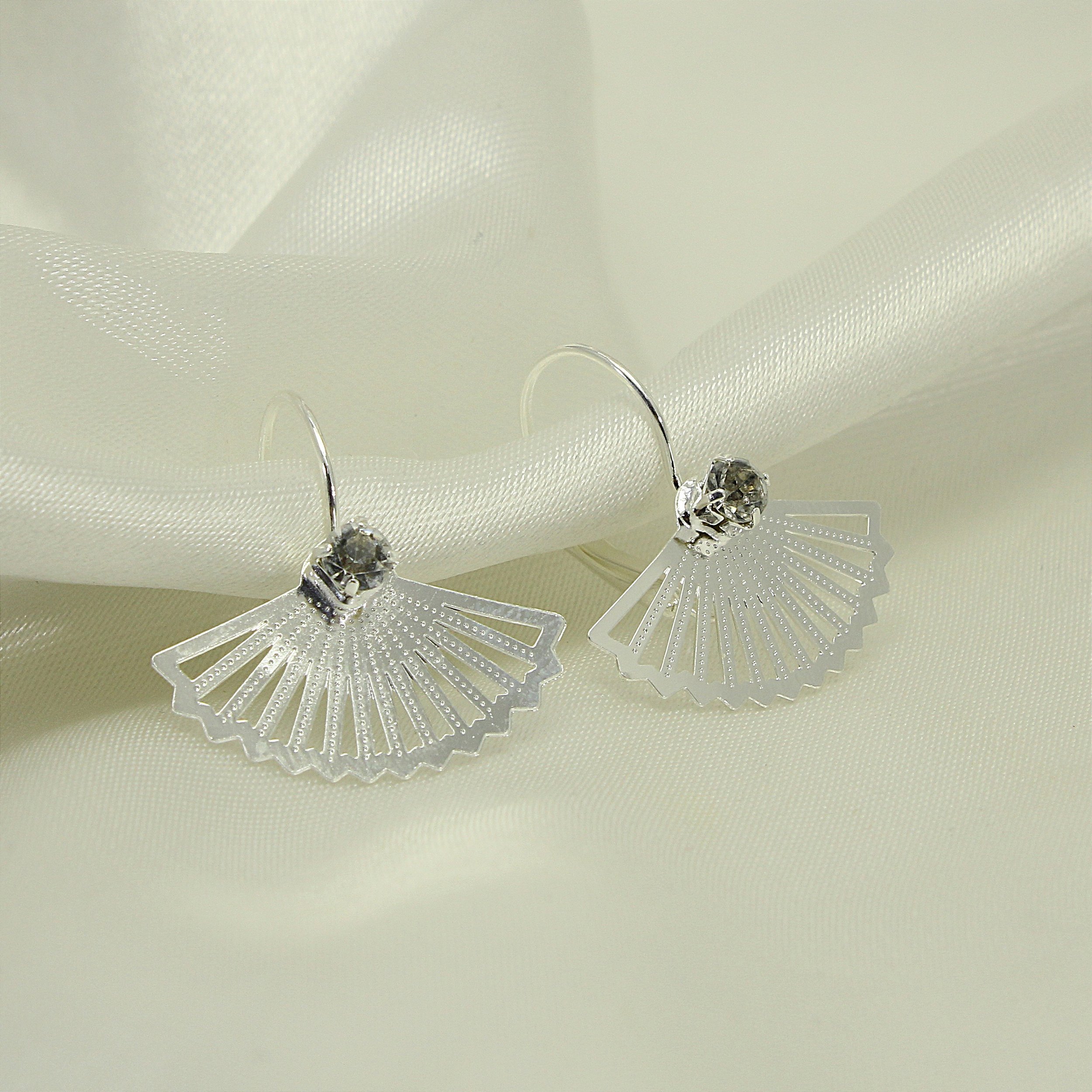 Brinco com Design de Leque e Zircônia Cristal Banhado com 30 Milésimos de Teor de Prata 925 e Finalizado com Verniz de Nanotecnologia