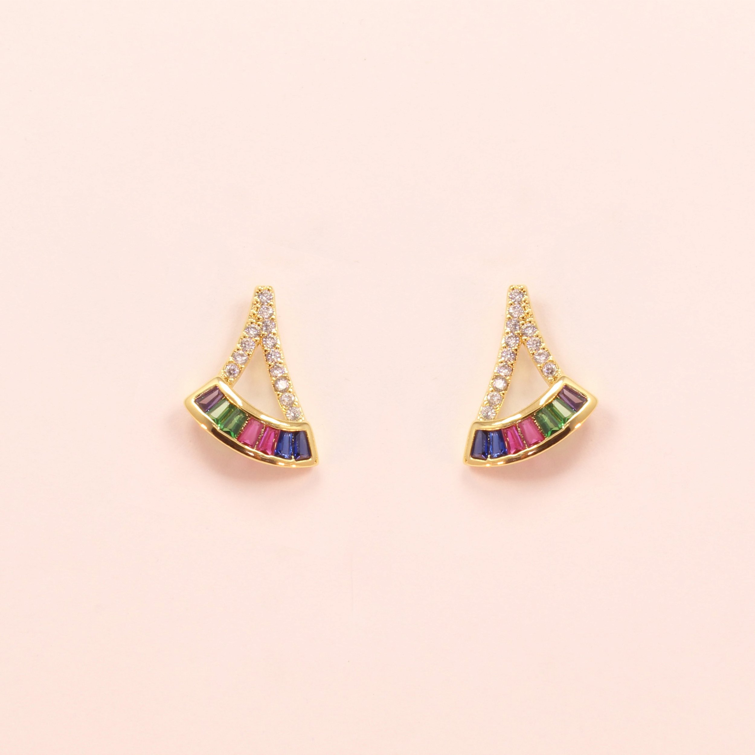 Brinco Trabalhado em Zircônias Multicoloridas Folheado a Ouro 18k